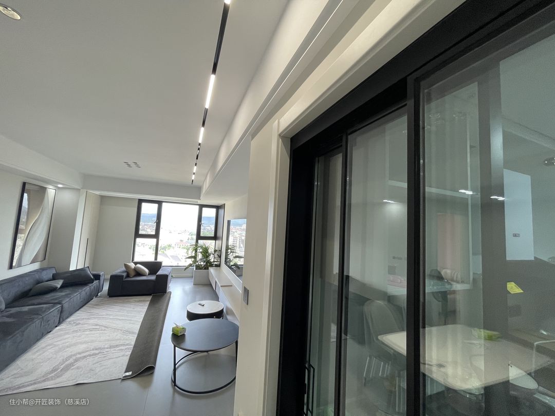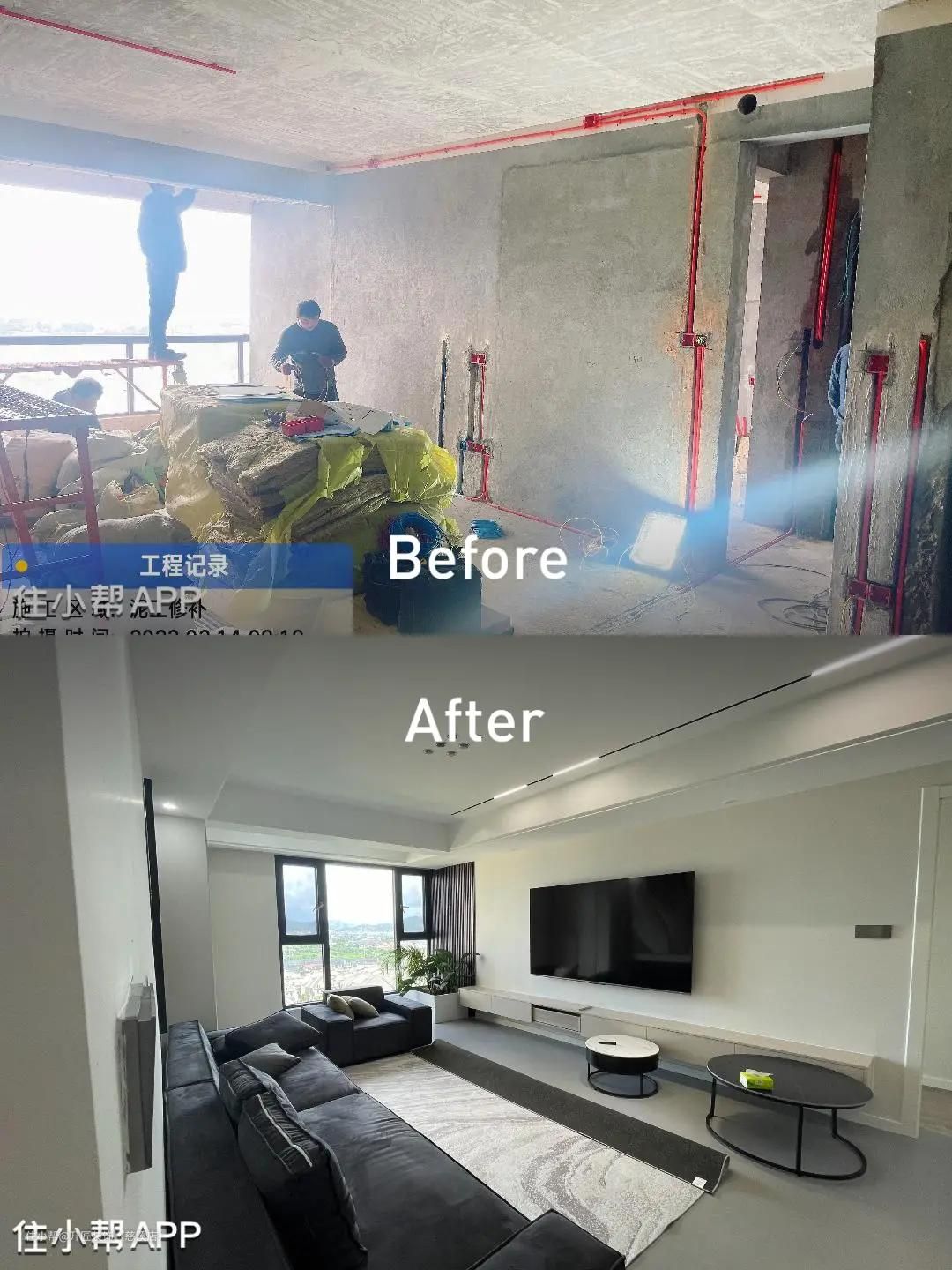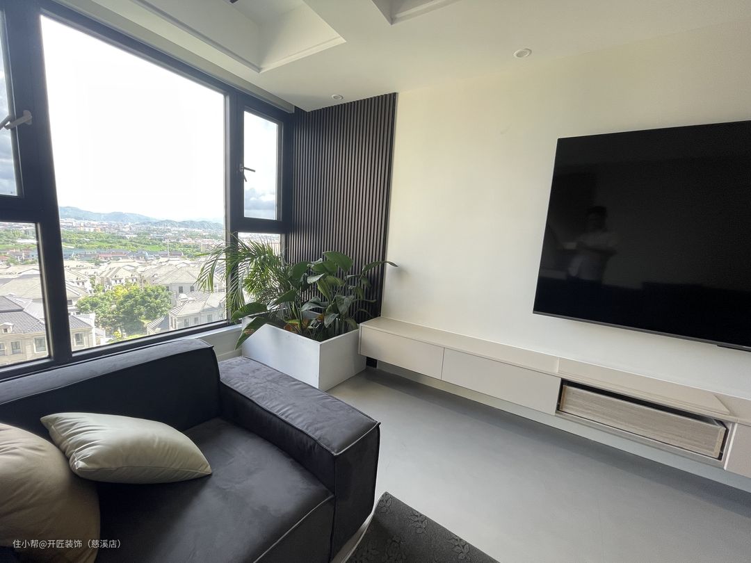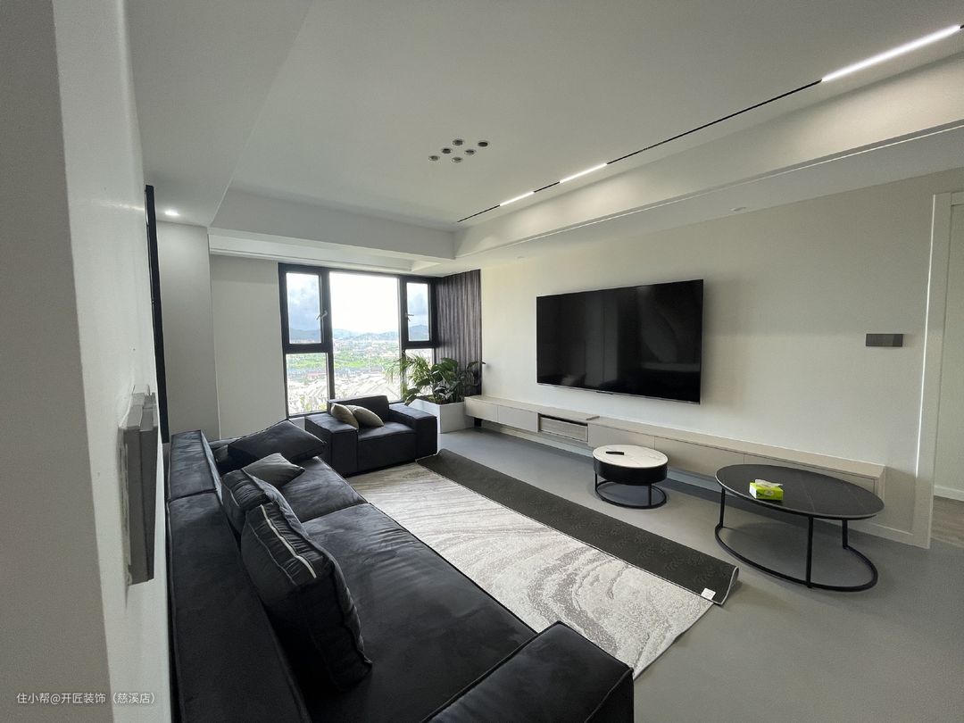 地面用的是750*1500mm 柔光大板砖,配上顶上无主灯,灯光打起来效果满满,没有累赘背景墙,仅仅用了乳胶漆,颜值也很高
