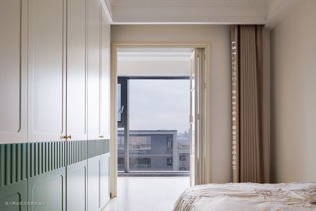 折叠门轻盈地分隔着卧室与阳台,在开启与闭合之间流露出别样的风情。当门完全打开时,阳台与卧室形成了一个连续的空间,让自然光与微风自由穿梭,为室内带来无限生机与活力。