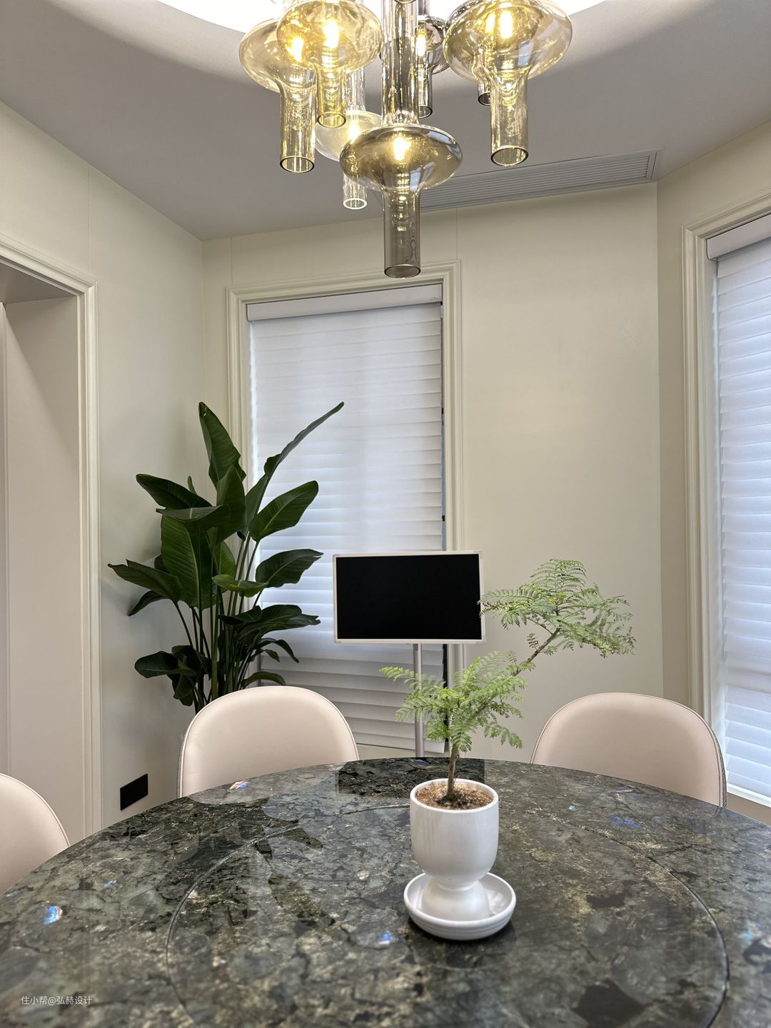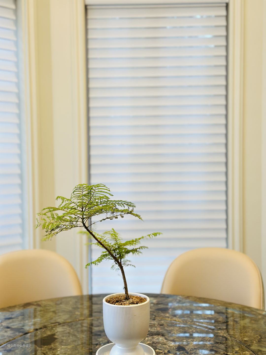 “就餐”独立且有仪式感的餐厅区域,圆形餐桌的设计,为一家人的相聚增加了互动性!餐桌的台面也是奢石材质,极简的餐厅空间满满的个性且带有一丝自然的格调!