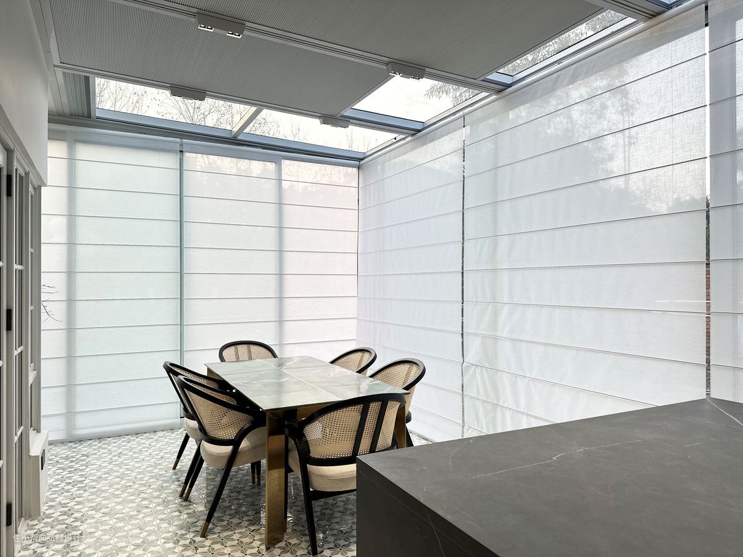 “闹”阳光房是与亲朋好友聚会的地方,也是一家人一起洽谈,玩乐的区域!意式德系的柜体设计,让空间极简且舒适!