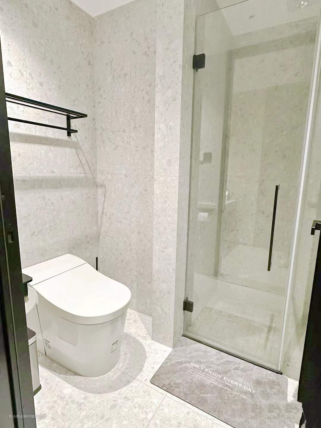做了干湿分离。干区: 汉斯格雅墙出龙头,墙面防水艺术漆。 劳芬超薄极简台上盆,自清洁功能。悬浮浴室柜6个抽屉收纳更加实用。湿区:得立极简无边框淋浴房 哑光黑,汉斯格雅沛适飞系列龙头花酒(摩登黑)。哑光面水磨石,防滑耐脏,比较有艺术感。
