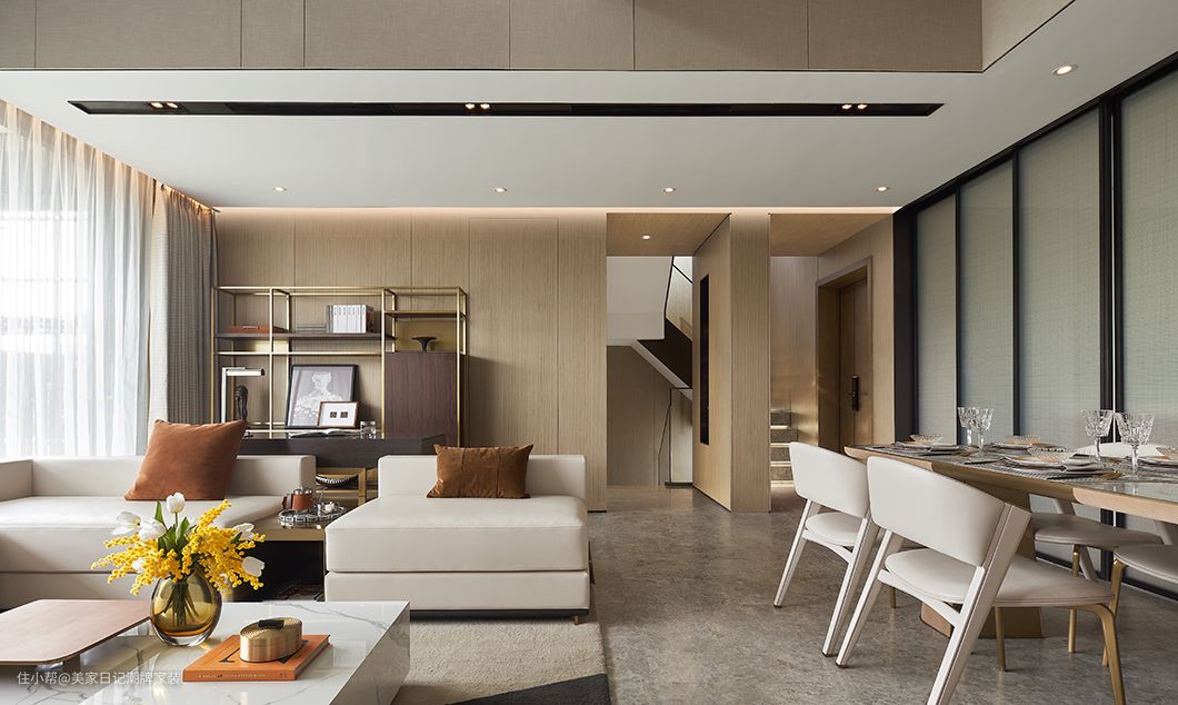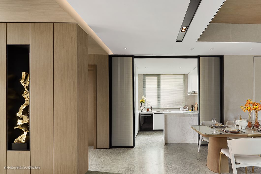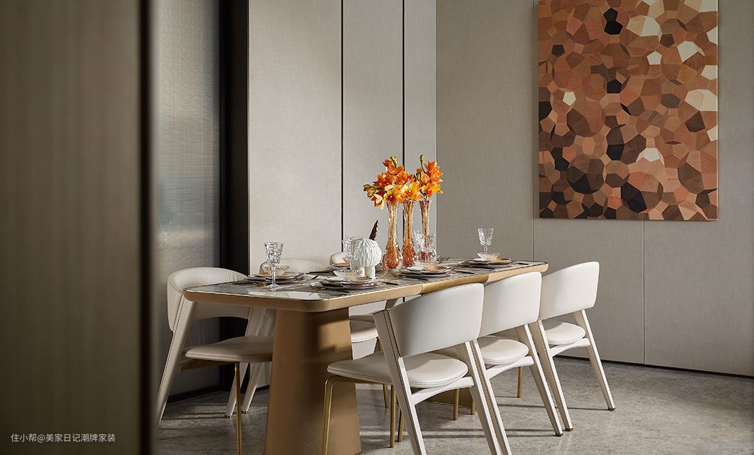 餐厅位于客厅旁,降半的挑高压缩了空间,温馨的氛围更加浓郁。