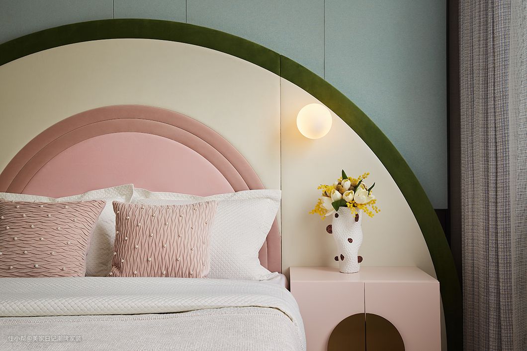 儿童房色彩鲜明,莫兰迪色系与深绿色的结合,令空间静谧又活络,恰好能够包容孩子们不同的成长时期。