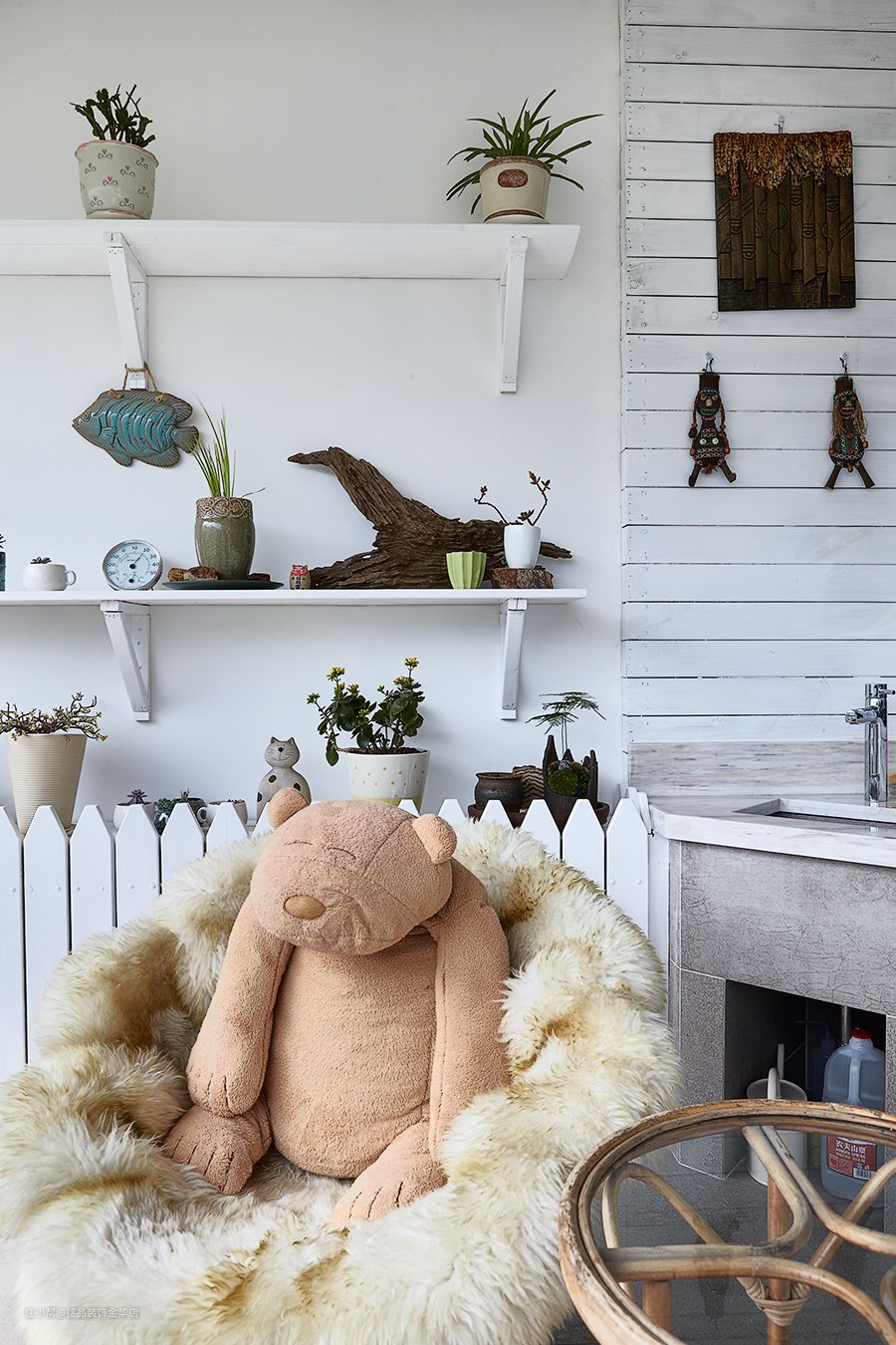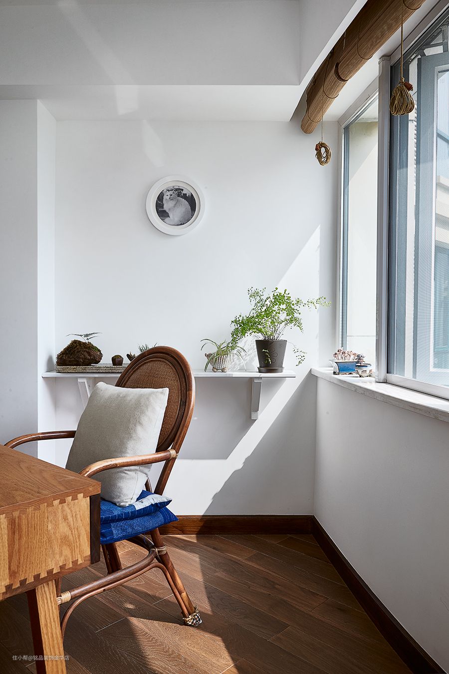 原来的阳台一分为二,一部分作为地台书房,冬日的阳光洒进窗户,再准备上文房四宝。阳台的另外一部分就是肉肉的天下,各种植物,闲暇之时种肉肉既能打发时间,又能看着一盆盆生命的发展。每一盆绿植、每一个摆件、每一个家具的选择,都留存着屋主热爱生活的痕迹。