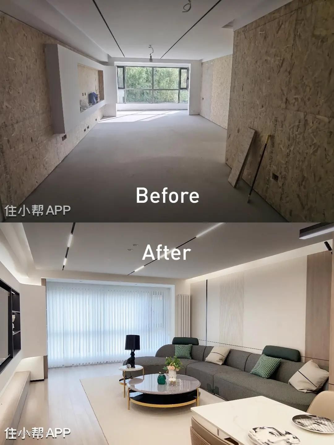 改造后 1、👋首先,我们客餐厅一体化设计,电视墙和柜子整整齐齐,不仅美观还能兼并收纳功能。😌 2、北面两个卧室拆除墙体,形成了一个大大的套间,让女儿在这儿休息,还有了独立衣橱间和独卫。再也不用担心女儿的衣物和私人物品没地方放啦!👗🪣 3、原南边的主卧室卫生间改成客卫,每个卫生间都做了干湿分离,客卫的洗烘套件放置于此。关上门后即使有噪音也不影响休息睡眠哦!🔇💤 4、关于收纳,我们将柜体能做嵌入就做嵌入,美观又适用。整个房间看起来既宽敞又舒适,真的是太满意啦!😍