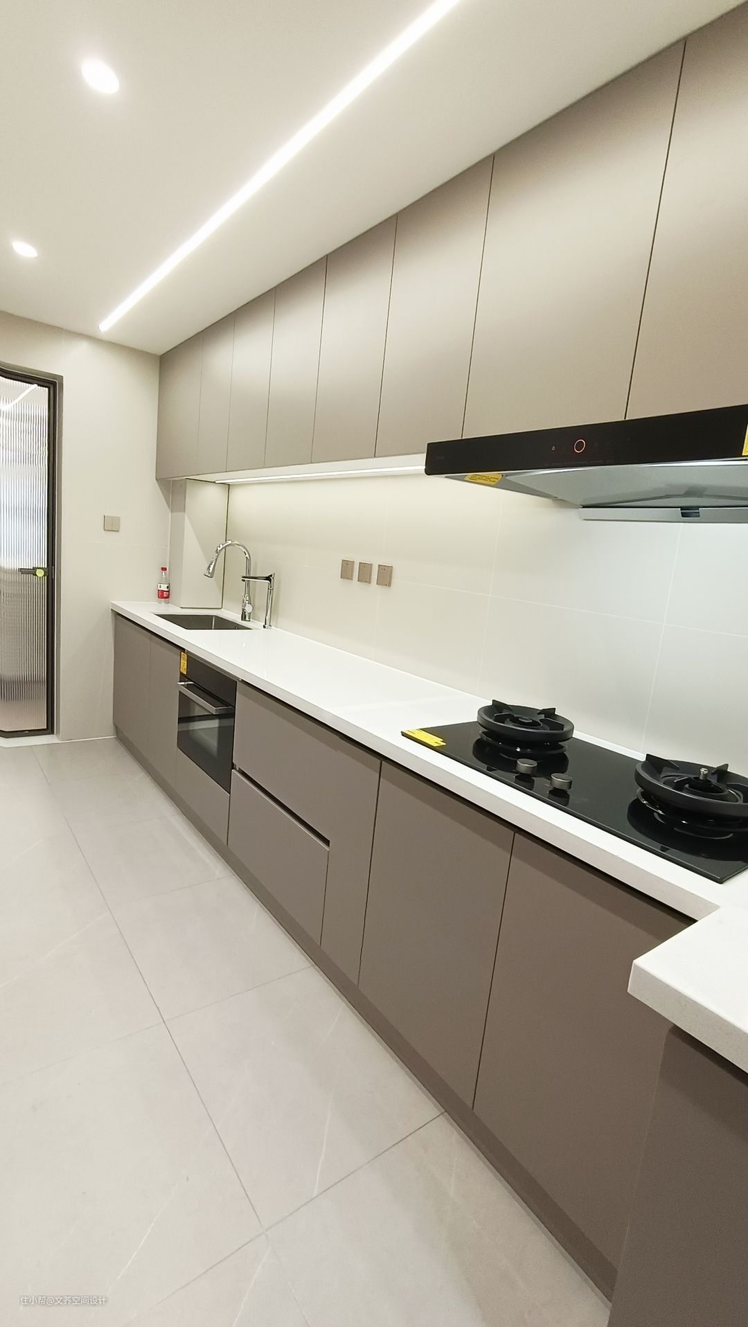 不做挡水条、不下挂,颜值和实用兼备的橱柜设计🌟 1️⃣厨房橱柜作为家中的重要组成部分,不仅要满足日常的储物和操作需求,还要追求美观和品质。 2️⃣橱柜使用进口的PVC贴面,经过热压吸塑后成形,不仅色泽高档,还具有防水、耐污、防褪色的优点。这样的材质让橱柜看起来很有档次,且经久耐用。 3️⃣吊顶方面,选择顶面石膏板吊顶,并加入筒灯和超薄灯带。不仅亮度适中,而且比传统的铝扣板和蜂窝大板更加美观。 4️⃣台面的选择是关键。超白石英石台面简洁干净,无挡水条和下挂的设计减少了卫生死角,让台面看起来更加整洁。 5️⃣台下盆的处理方式既美观又便于清理台面。 在安装过程中,拼接处的处理也是关键。㊙️师傅会使用ab胶进行粘合和打磨,让台面缝隙消失,呈现出完美的整体效果。