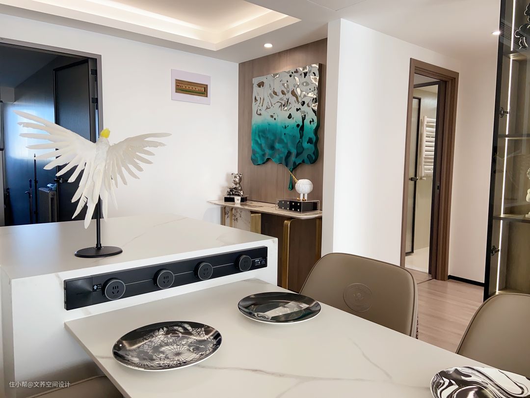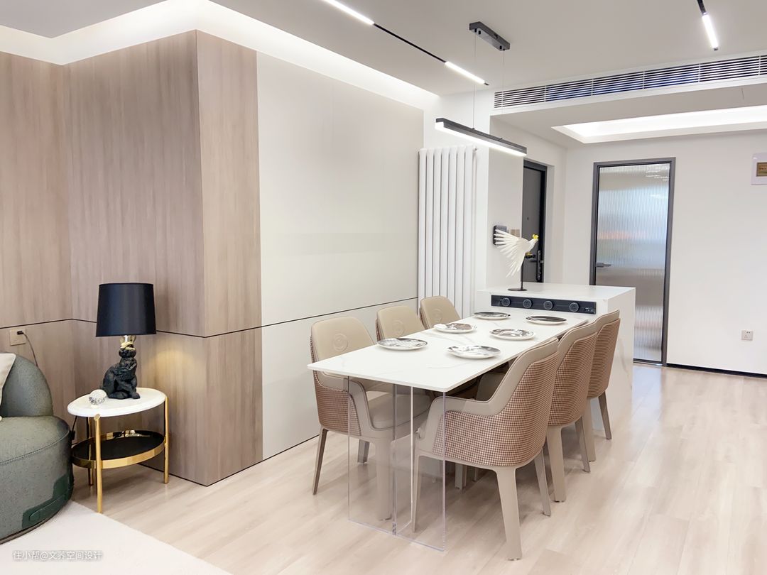 🌟现代风格的餐厅设计,真的是让人眼前一亮!整个空间采用开放式设计,不仅让空间看起来更加宽敞和明亮,而且增加了互动性和趣味性。 🌟餐厅与客厅之间的木饰面墙板,既延续了整体的设计风格,又增加了空间的层次感。软包皮质的餐椅,坐起来舒适极了,再品尝一口美味的下午茶,真的是太惬意了! 🌟餐桌采用一桌六椅的设计,非常实用。岛台的设计也十分巧妙,不仅增加了储物空间,还让整个空间看起来更加美观和舒适。 🌟现代风格的家居设计,简约而不简单。它注重实用性和舒适性,同时追求简洁和美观。这样的设计理念让现代风格的家居成为了一种时尚和品位的象征。