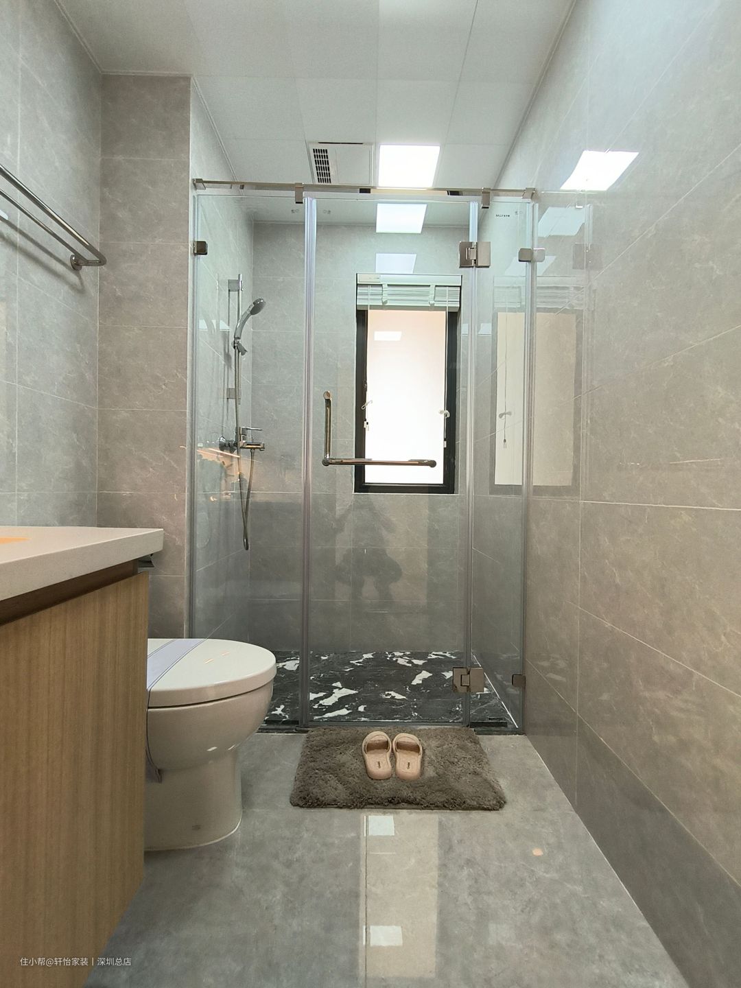 卫生间为了营造舒适的环境感,选择了光面大理石地砖作为地面材质。光面大理石地砖不仅具有通透感,还能够反射光线,使整个空间更加明亮开阔。干湿分离采用了玻璃隔断来分隔淋浴区和洗手台区域。这种设计不仅美观,还能有效地防止水分溅湿到其他区域,保持整个卫生间的干燥与整洁。 卫生间橱柜通过合理的隔板有效地储存和分类各类卫生用品,让空间更加整洁有序。为了保证安全与防水性能,插座被防水盒包裹。这项设计细节不仅考虑了日常使用的便利性,还兼顾了家庭成员的安全。防水盒的设计使得插座在湿润环境下也能正常使用,避免了电器与水分接触造成的潜在危险。镜柜下方的开放式设计,可以摆放一些常用的卫生用品或装饰品,方便取用并增加了空间的层次感。而镜柜下方的储物空间则可以存放较多的物品,保持卫生间整洁有序。