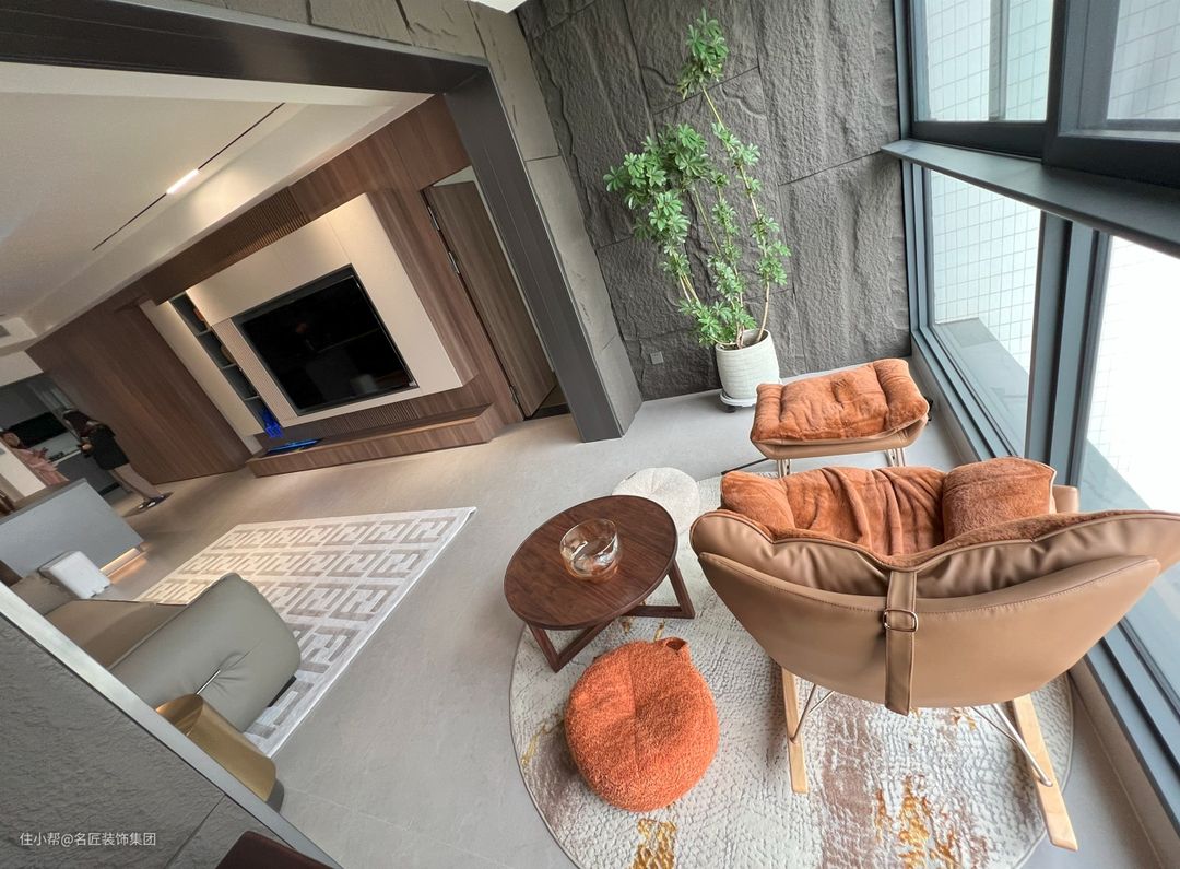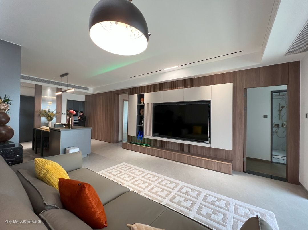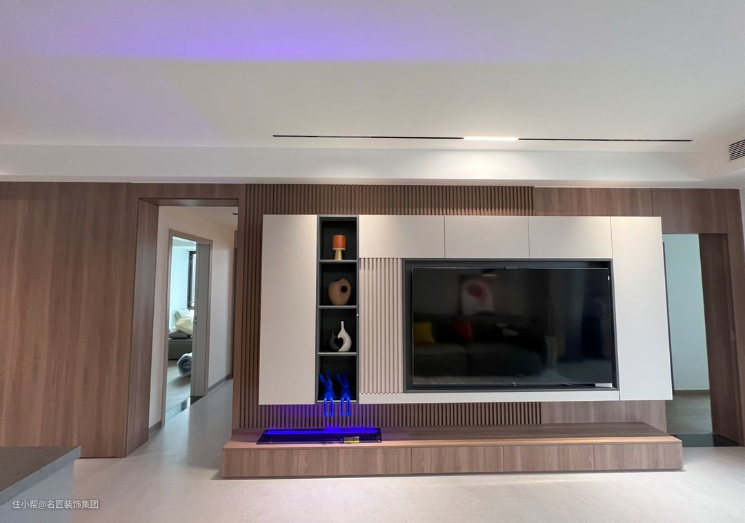 软装方面使用浅色调的墙面和家具,如米色、卡其色或淡灰,这些颜色能够反射光线,使空间看起来更大。定制的沙发墙壁增加了一些线条感的材料,增加艺术感。