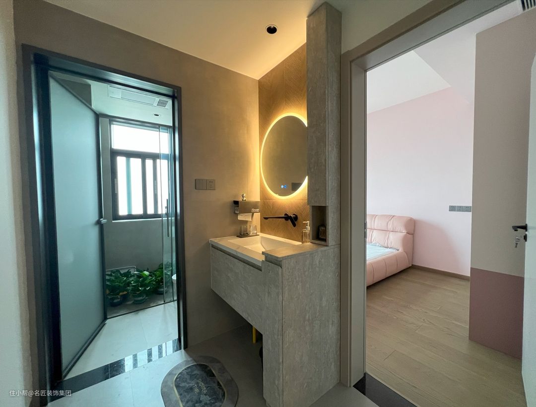 卫生间做干湿分离:将洗手盆外置可以使卫生间看起来更加宽敞明亮,增加了整体的空间感。 独立淋浴区:将淋浴区与马桶、洗手盆等区域分开,避免水花溅到其他区域,保持卫生间的干燥和清洁。 玻璃隔断:采用玻璃隔断将淋浴区与其他区域隔开,既保证了空间的通透感,又能够有效地防止水汽渗透。 防水处理:在卫生间地面和墙面进行防水处理,确保水的渗漏不会对其他区域造成影响。 排水系统:合理设计排水系统,确保水能够迅速排出,避免积水和潮湿。 通风设备:安装良好的通风设备,保持空气流通,减少潮湿和异味的产生。