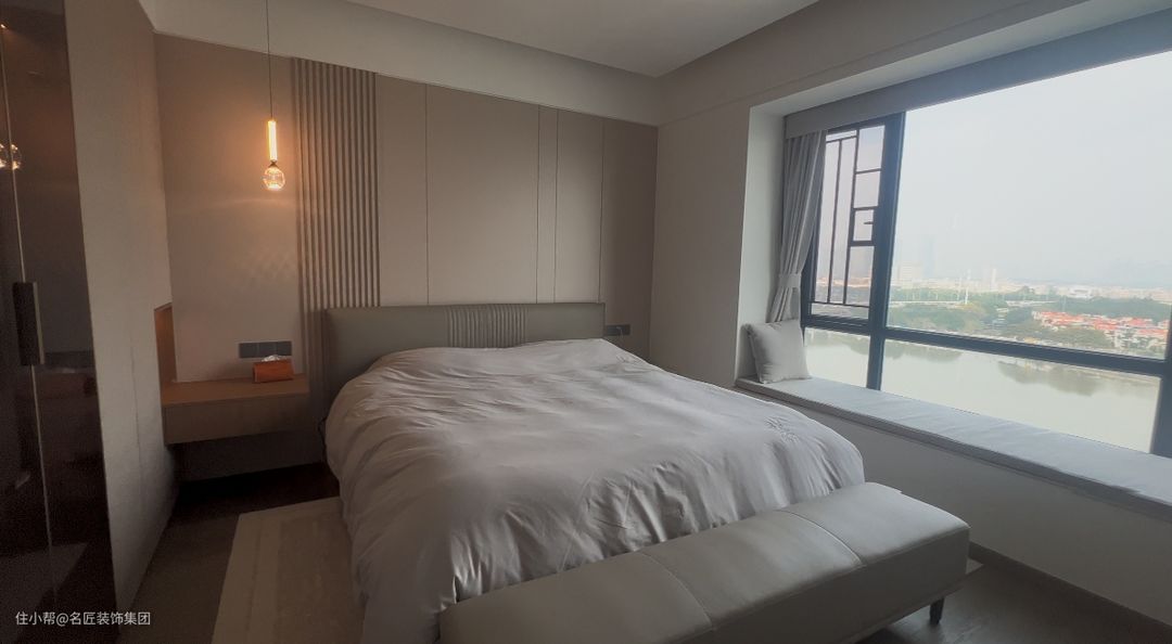 打通阳台可以引入更多的自然光线,使用了大面积的落地窗,可以观赏江景的同时,还可以使空间看起来更加宽敞明亮。