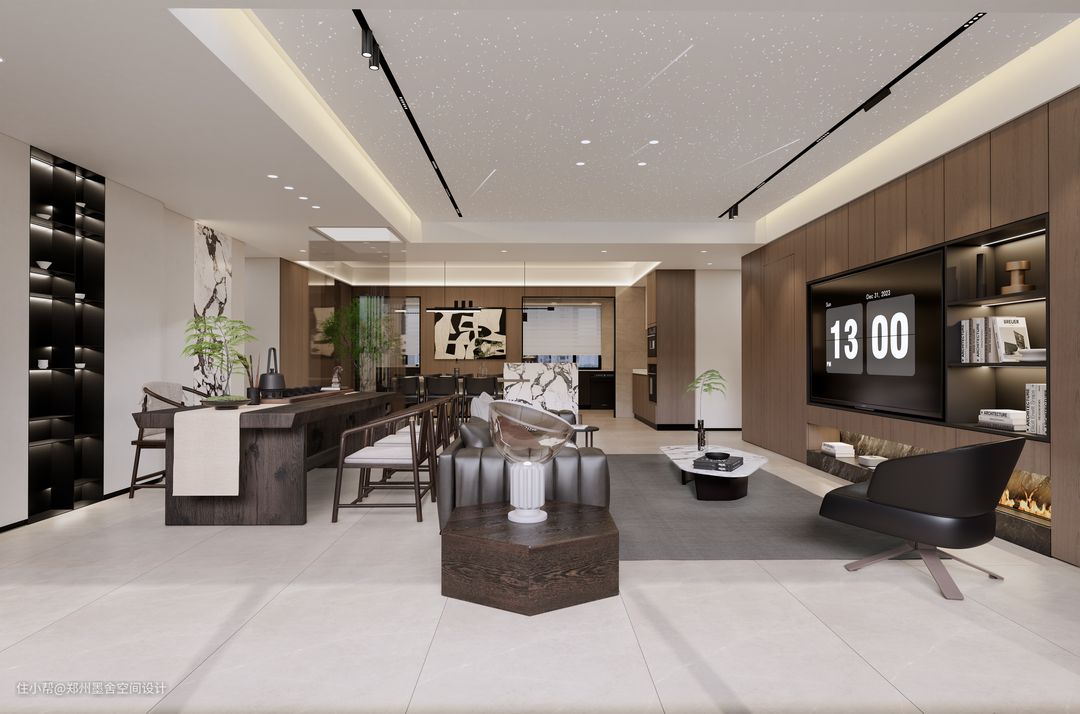 ■把茶台纳入客厅,作为茶室,空间显大的同时,增加空间的功能性,长辈在此处休闲饮茶,小朋友平时也会在这里写作业,家人的身影在这里时有交错。