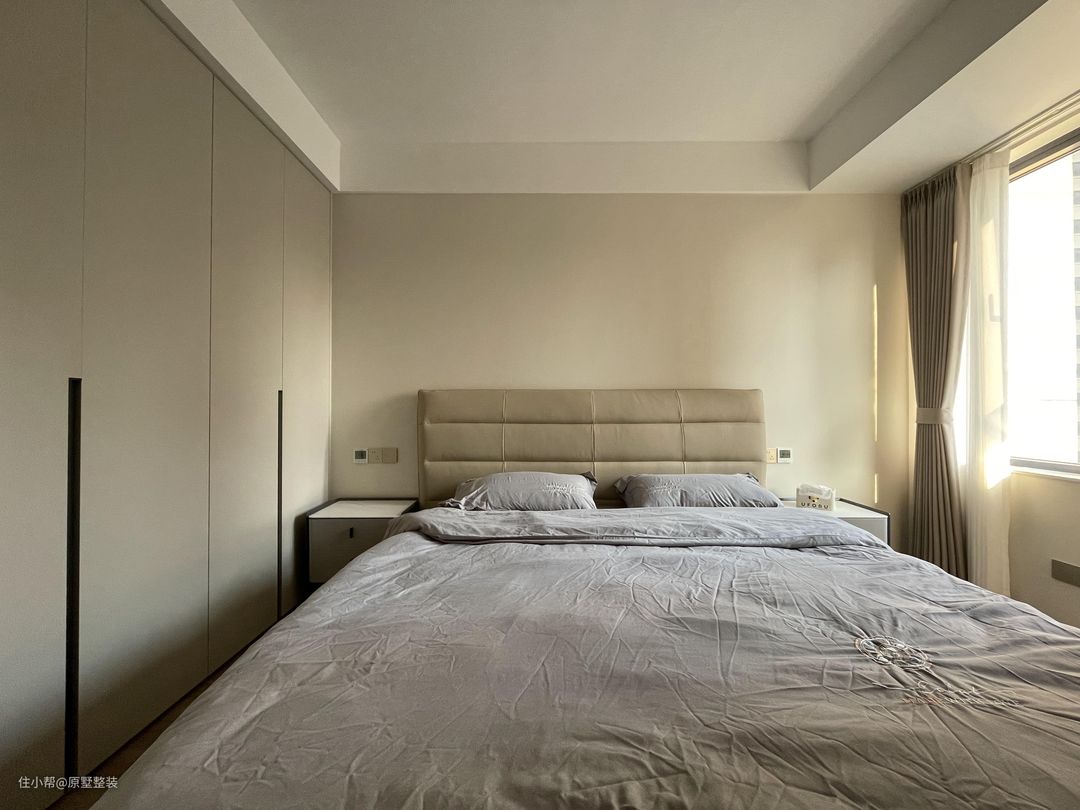 主卧以奶油色为基调,黑色与灰色家居元素的加入,平衡了奶油色带来的甜腻感,赋予空间独特的时尚魅力!