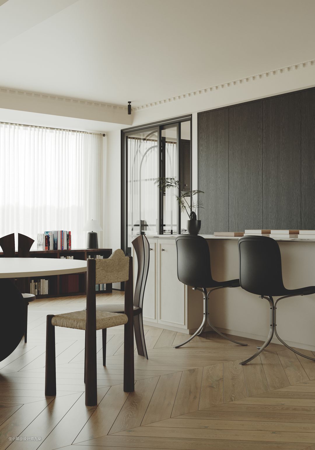 整套设计融合了法式复古的优雅当代设计手法的简洁,创造了一个既有历史感又不失舒适现代的居住环境。