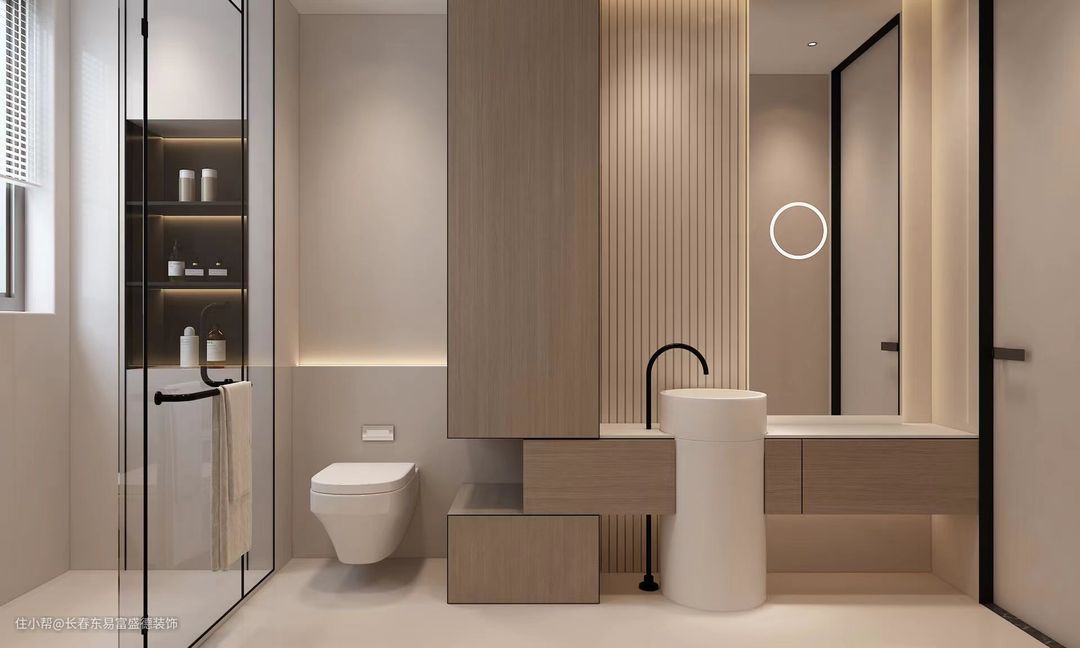 在卫生间的设计上,抛开传统的表达方式,采用微水泥材料,天地之间一气呵成,流线形吊顶垂下,搭配树脂橙色浴缸,让沐浴更加灵动!