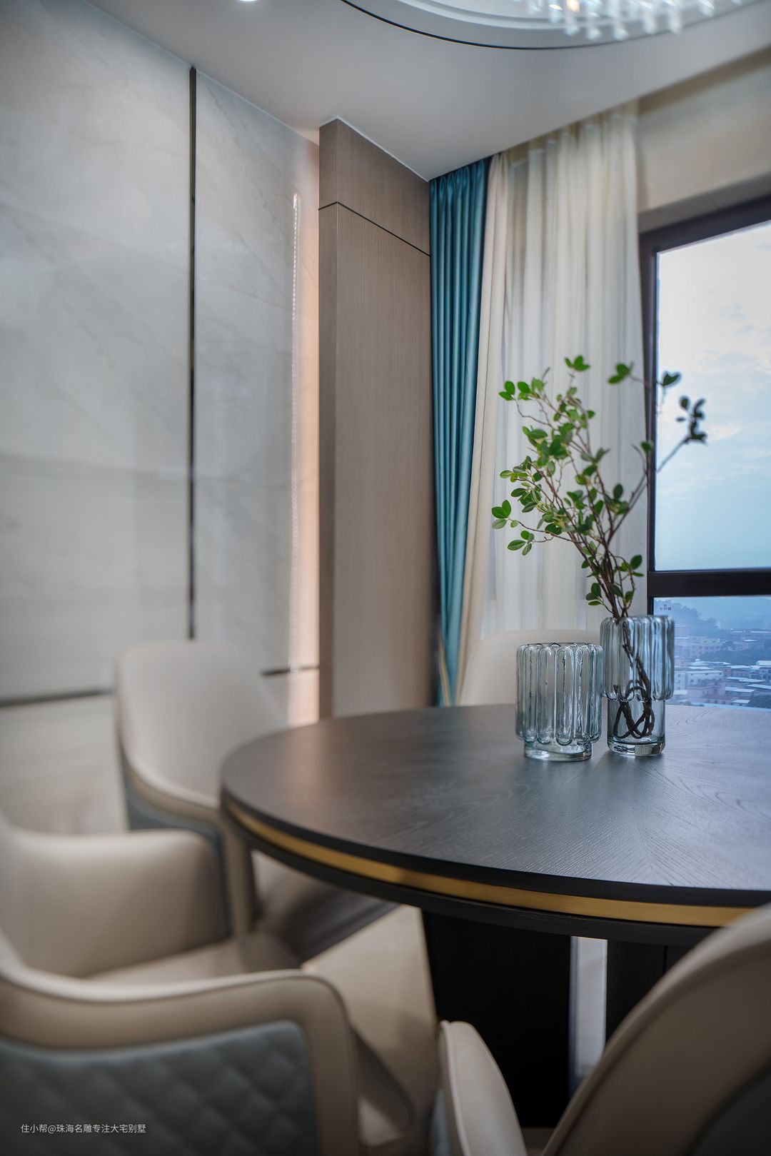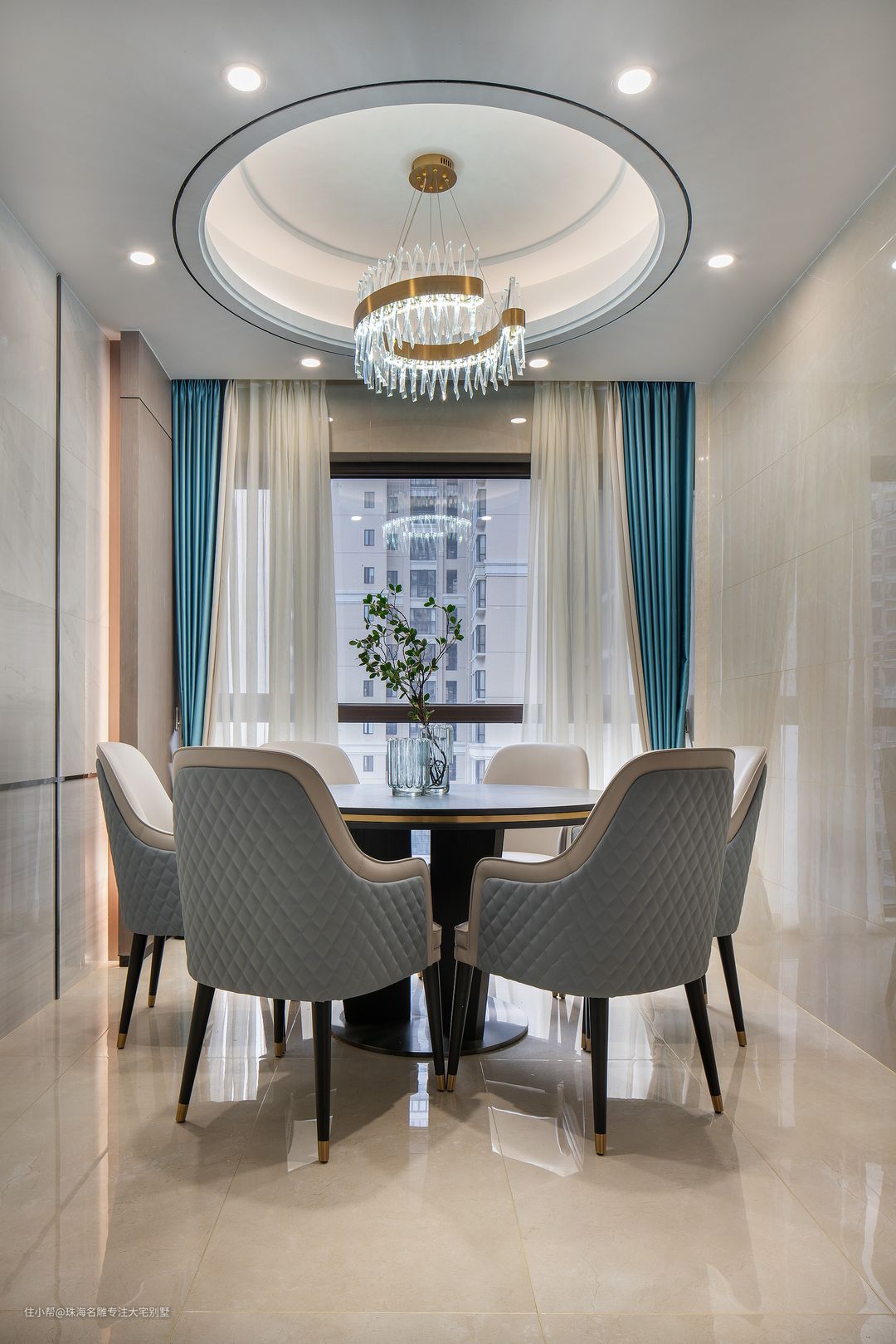 大理石餐桌选用经典的白、蓝配色,桌面上天然细纹自带个性与魅力,既富有诗意也具有艺术感
