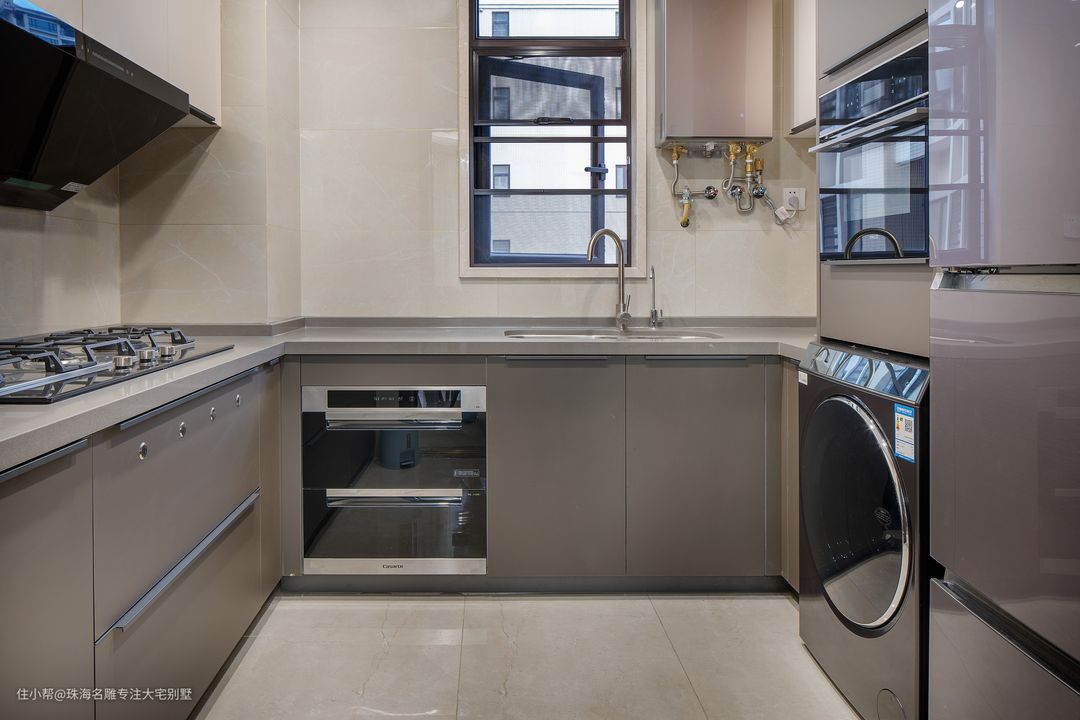 厨房是最具人烟火气的地方,蓝色与米白为底,简约高级耐看。