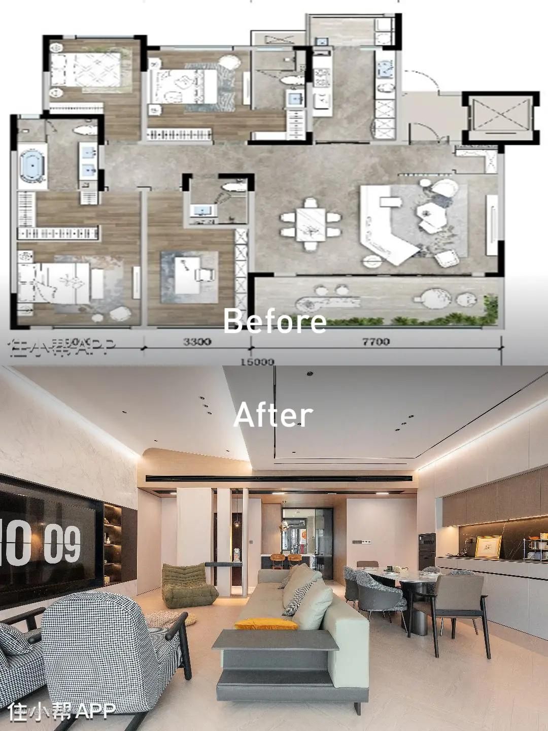 这套作品的面积很大,横厅户型,整体的布局还是合理的,动静分区。唯一一点就是业主比较介意入户妈耶独立玄关,开门就是客厅,所以要求整改。