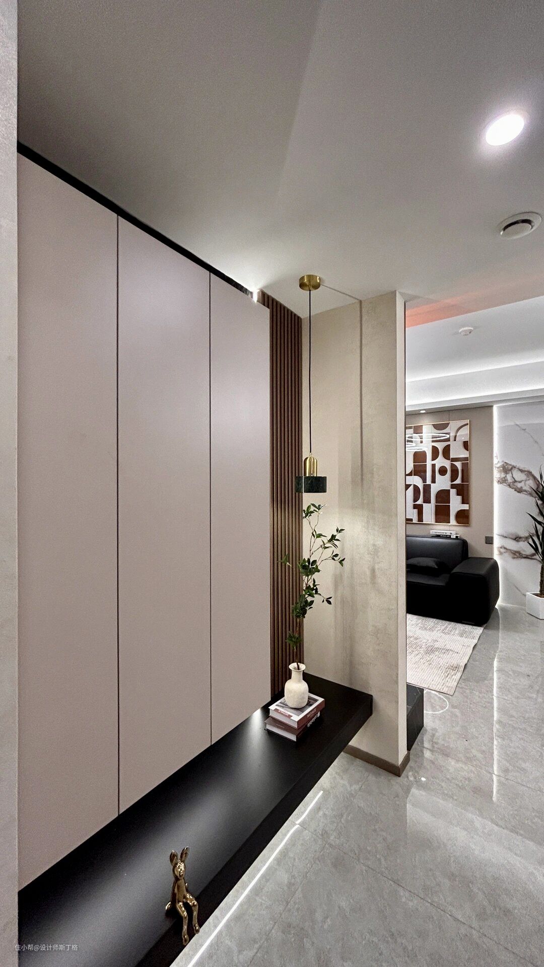 玄关,家里的“门面”,简洁明了的设计,在线与面之间演绎现在年轻人喜爱的极简的生活质感。