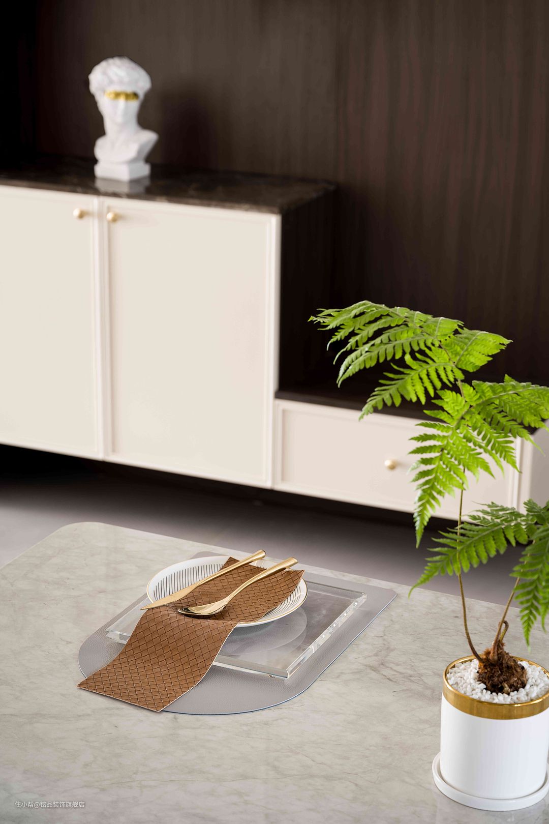家的功能核心围绕着公共区域建立,空间打通后,明朗通透的环境不由让人心生欢喜。地面通铺柔光砖,搭配珍珠白乳胶漆,温柔了一室光景。 水晶吊灯投下璀璨光影,拉升客厅的档次。悬浮电视柜不仅方便扫地机清洁,还能将各种插座都藏在内部,防止幼儿玩耍。 硬装删繁就简,灵活运用经典线条和角花进行装饰,丰富墙面肌理效果,再配合实木、绿植、皮革等元素,创造出轻法式复古,又颇具松弛感的house。