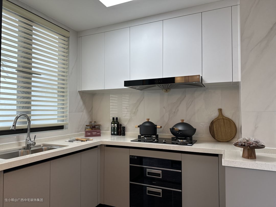 厨房设计以自然、实用为主题,大量运用木质元素,散发出自然的芳香,让烹饪过程中充满幸福与愉悦。L型设计巧妙利用空间,使厨房功能区域划分明确,提高了使用效率。烹饪区专注烹饪,洗菜区则专注于食材的清洗,两者互不干扰,让烹饪变得更加轻松愉悦。