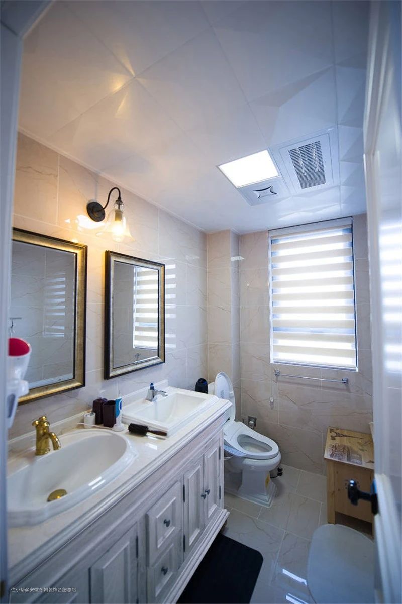 在卫生间墙壁上装上古典的壁灯,凸显出温暖的感受,让卫生间中的美式风更具有特色。