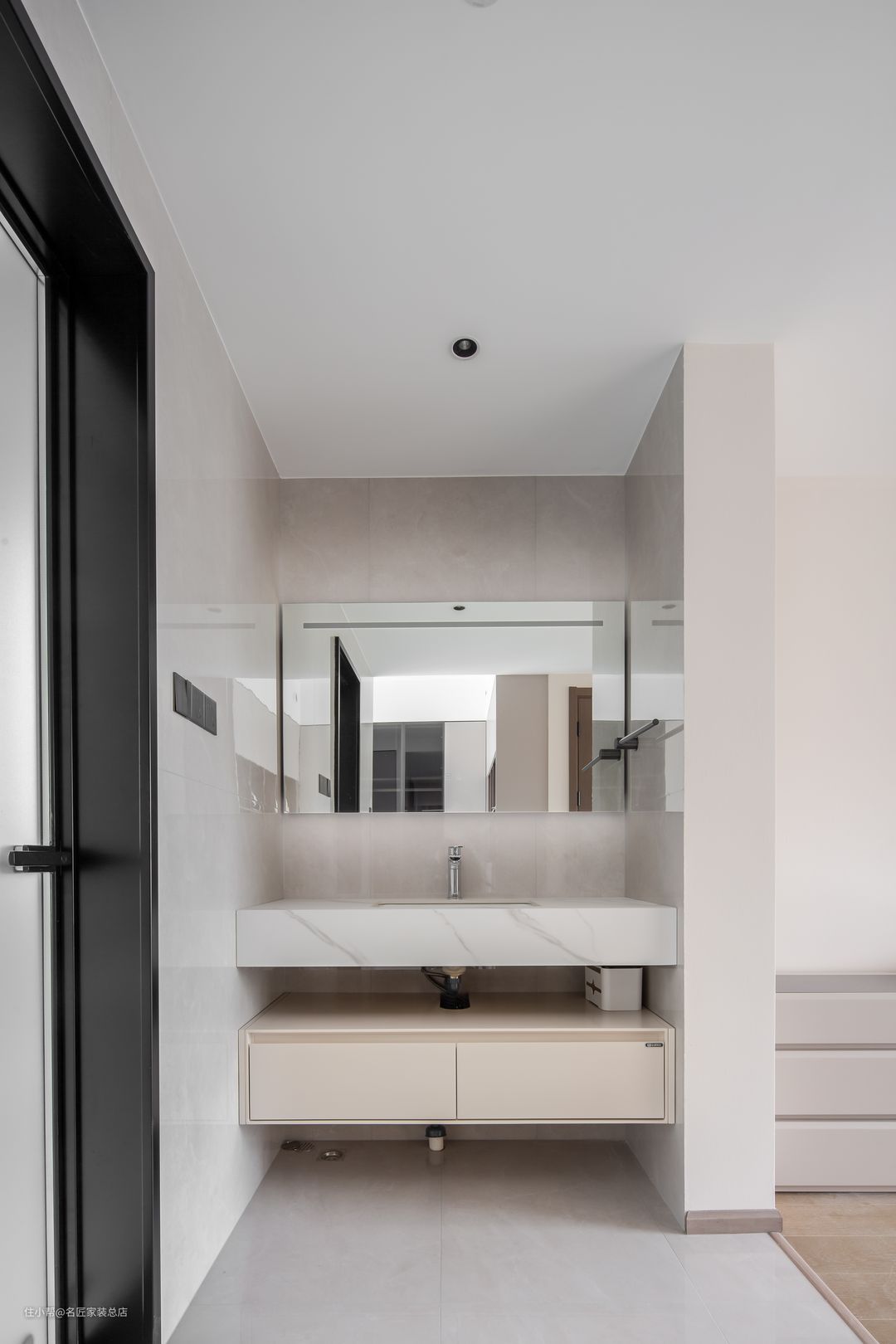 洗手间的设计同样现代而简约,白色的瓷砖,搭配黑色的卫浴设备,给人一种洁净的感觉。宽敞的洗台,方便了早晨的忙碌时光。