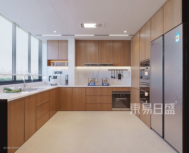 厨房的白色墙砖与木纹橱柜相得益彰,营造出现代与自然的完美融合,计师的用心和品味,让厨房成为家中的亮点。