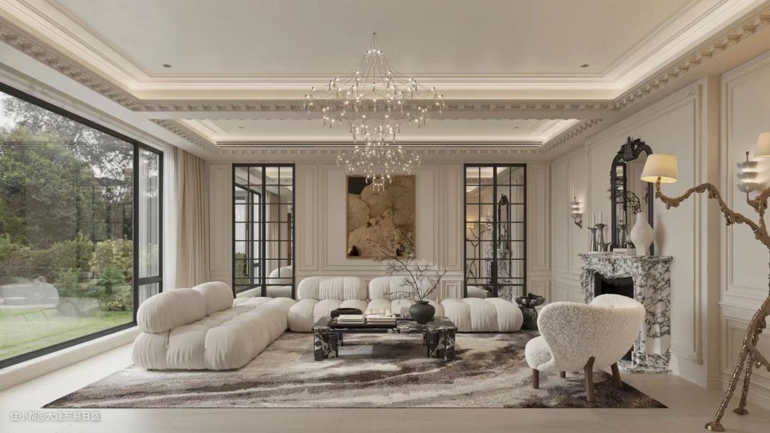 与传统的法式装修风格相比,法式轻奢风格更加简洁、精致。它使用简单的线条和图案,以及精致的装饰和细节,展现出一种优雅、奢华的氛围。强调自然和清新、它使用柔和的色彩和自然的材料,如木头、石头和丝绸等,打造出一种舒适、自然的氛围。