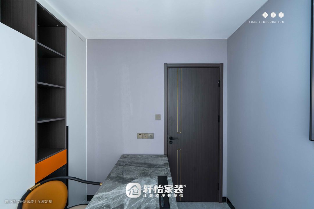 现代风装修 选用简洁明亮的配色 搭配没有过多装饰的家具 恰到好处的精致 给人带来清爽宽敞的感觉 本期案例是120㎡的新房装修,选用时下流行的高级灰色调,简约清爽,运用筒灯、灯带、磁吸轨道等多种发光源,提升居家氛围感。 设计思路: 1、玄关柜和餐边柜一体化设计,动线流畅,进门通透感十足; 2、全屋以黑白灰为主色调,用橘色和蓝色做点缀,高级且耐看; 3、卧室衣柜侧面均做弧形设计,充分考虑居家中的安全因素,居住舒心放心。