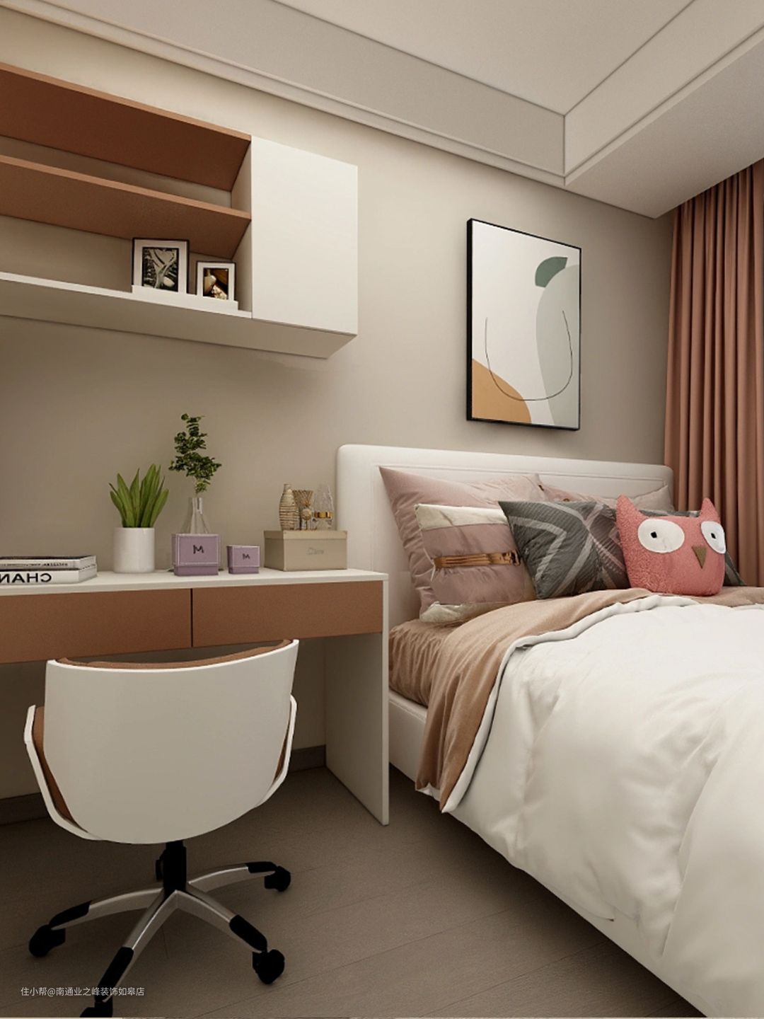 书桌客厅一体式设计,将客厅纳入办公的功能 这样可以学习、办公、喝茶、看书… 让一家人都可以使用✨ 将书桌与客厅设计成开放式办公书房📖 不仅提升了空间感 同时也满足了和家人的互动与陪伴 书桌后面做了一排定制柜 收纳空间增多,空间充分利用 让整个空间显得干净整洁、不凌乱🌟