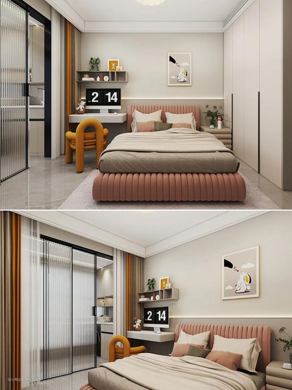 “粉嫩”是女孩房的主色调,从墙面到窗帘,再到床品装饰等,无不在流露出少女独有的“娇憨感”。