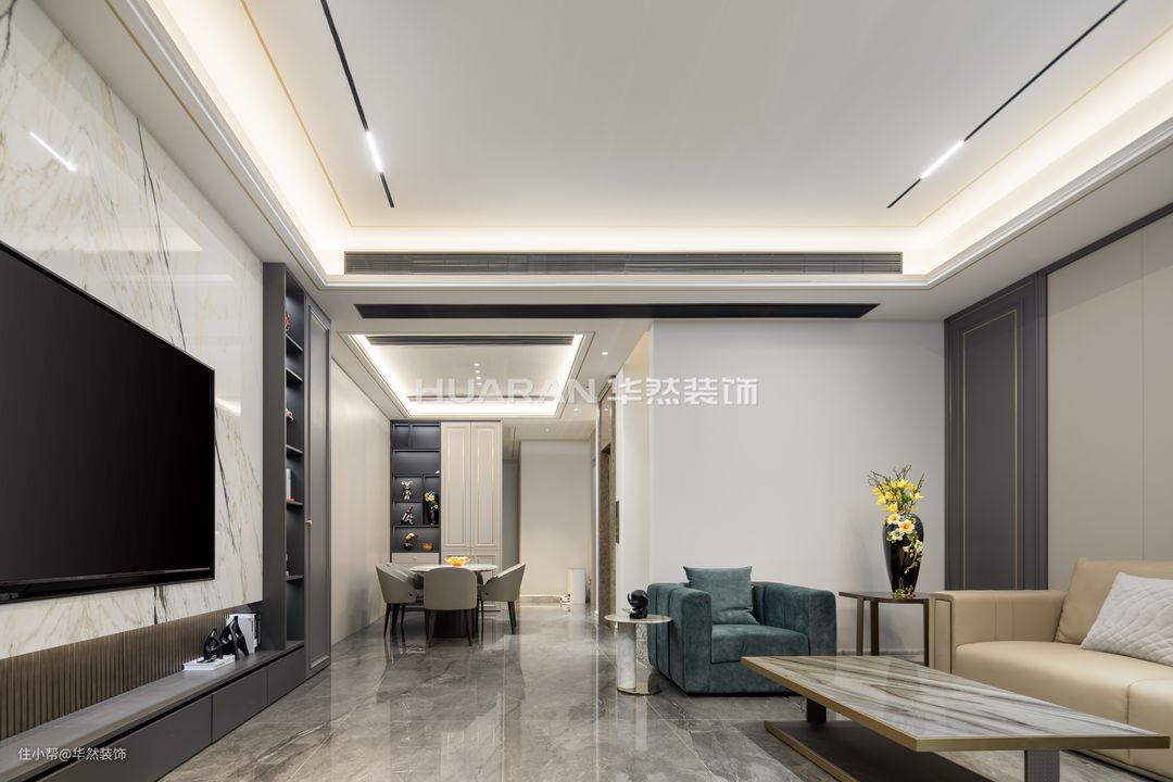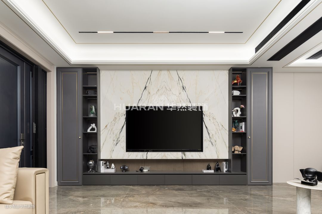 全屋的风格定调在现代美式 大理石的背景墙 石膏线的设计 缓解墙面的单调 打造出一个最符合现代人审美的家居空间