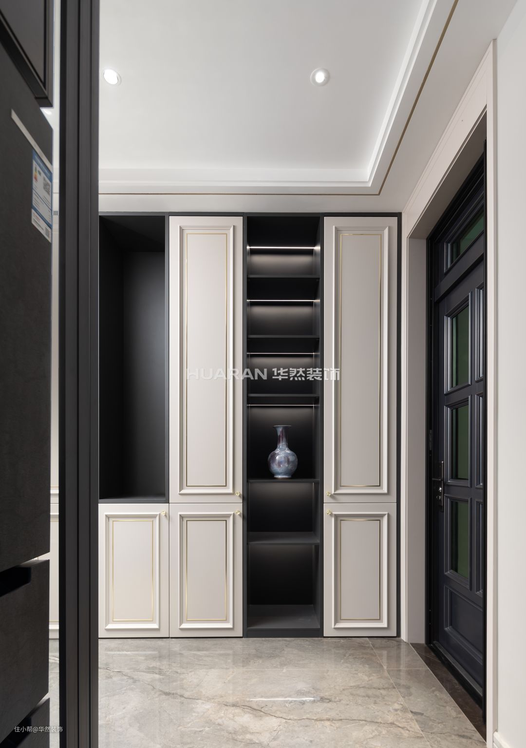 进门右手边满墙柜 遵循“一浅二免三开放”原则 浅色为主 免拉手设计 三分露七分藏 整个空间拉伸感非常足 收纳性和美观性妥妥拿捏了!