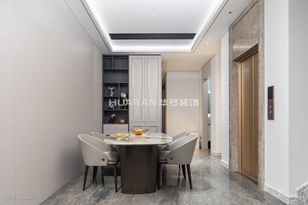 餐厅靠近厨房区域 动线流畅 设置开放与封闭式相结合的餐边柜 既满足吃饭这一功能性需求 又可作为厨房收纳的延伸