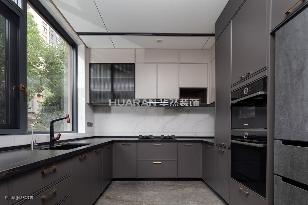 利用三面墙建立U型操作台 动线迁回贯穿整个操作流程 做内嵌式烤箱、洗碗柜 看起来整体性更强 也大大节省了空间