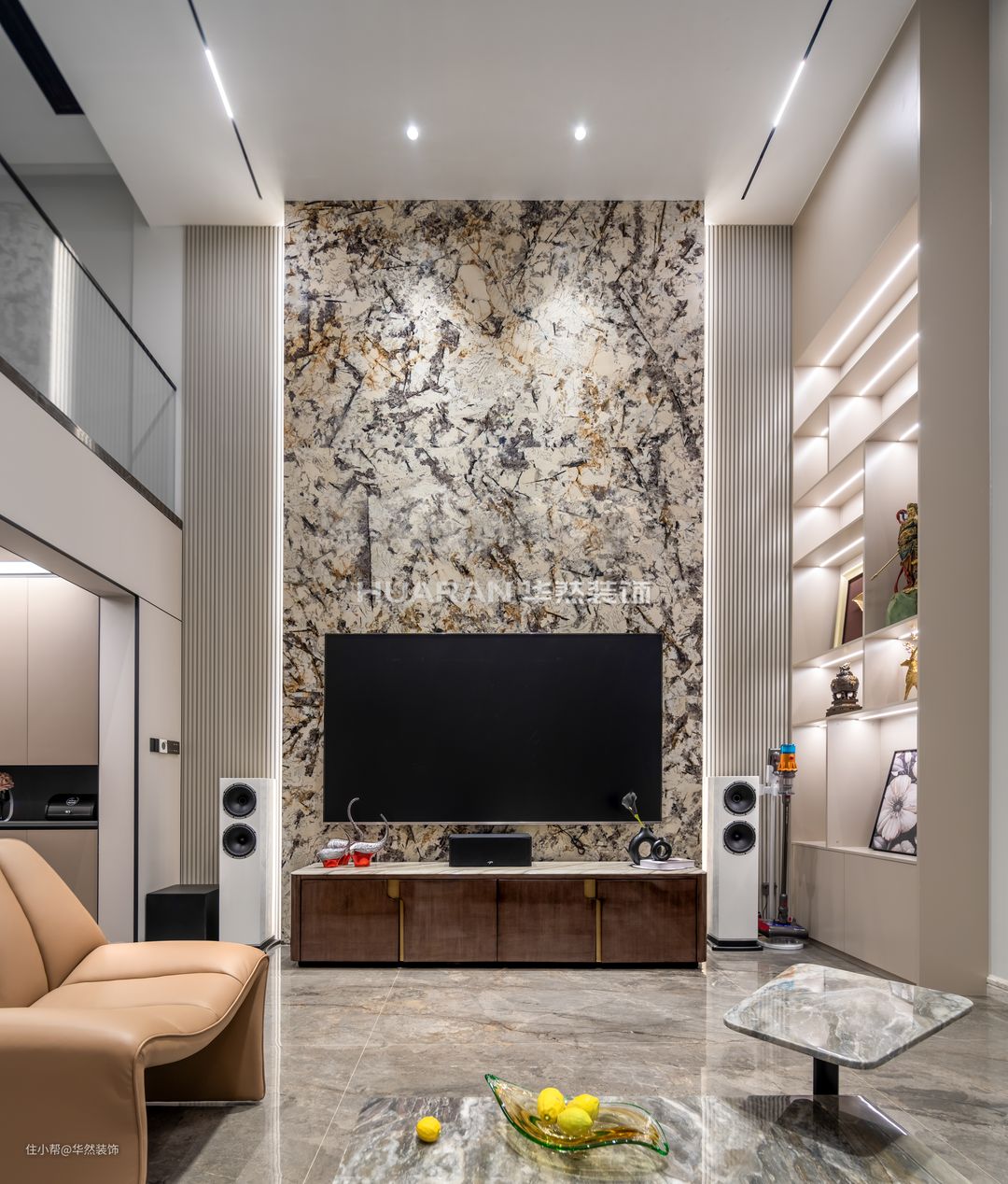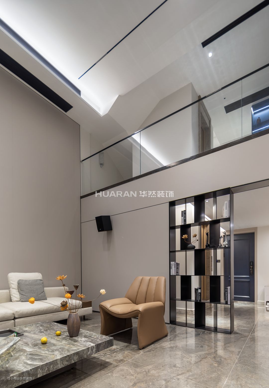 利用地下室的层高设计 夹层将有限的空间打造成开放式茶室以及客卧区域 让家里的功能性更强 光打在实木案几上 意韵悠长 会客区域挑空设计 到顶的岩板 线灯做辅 筒灯直射 让空间散发轻奢格调 电视 音响一应俱全 在家就能享受KTV的氛围~ 不规则金属壁龛装饰柜作为半隔断墙 轻盈高拉满 整体空间显得更加通透 摆上各式各样的物品 舒适悠闲又有趣~