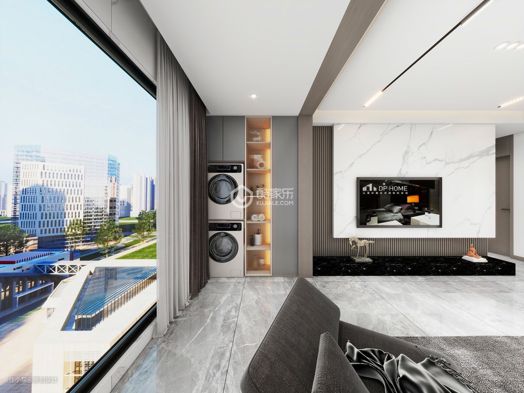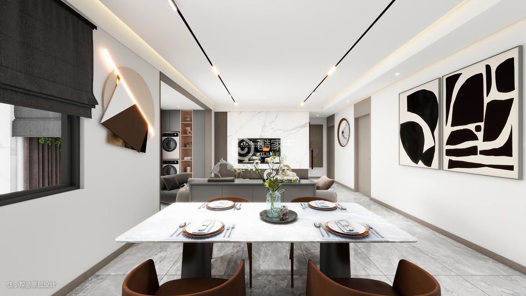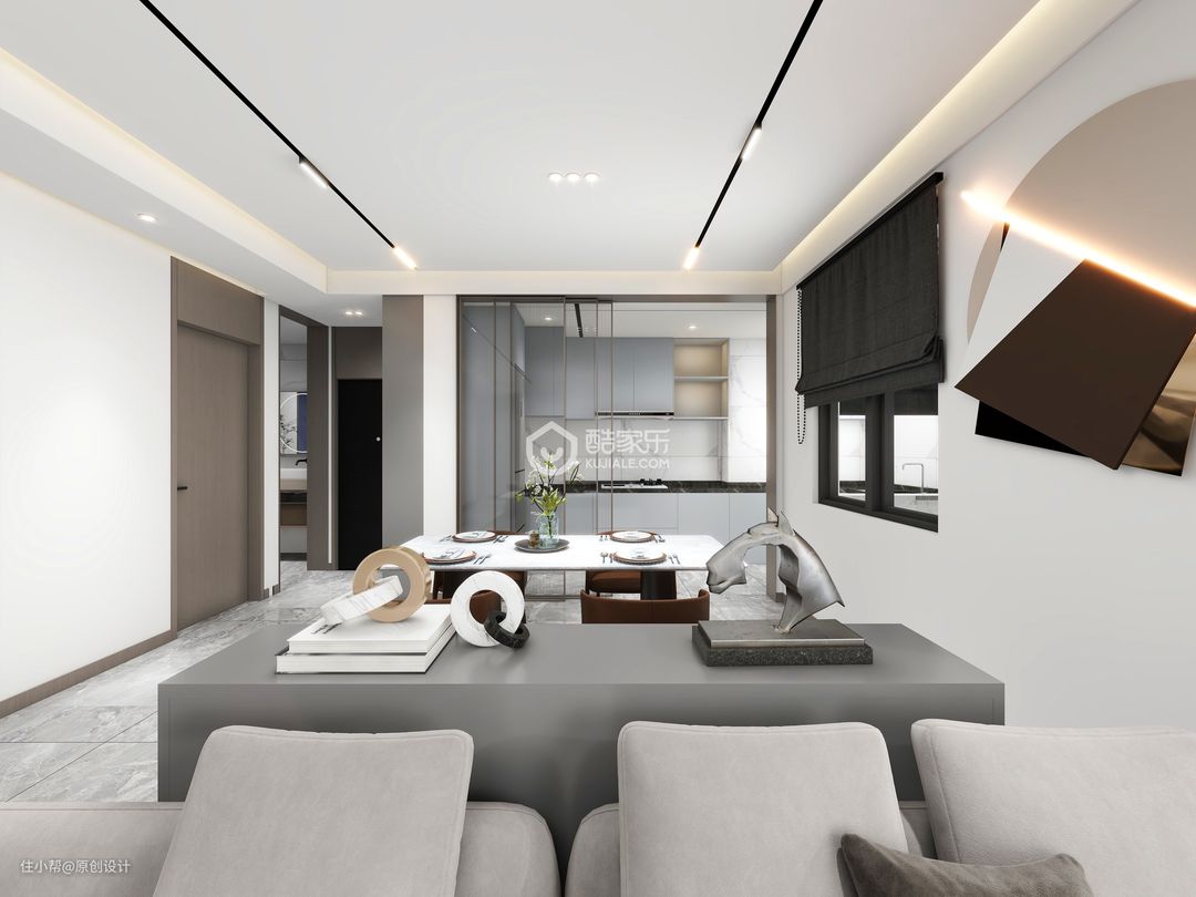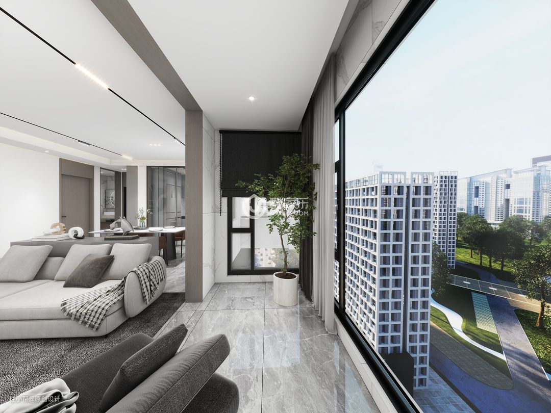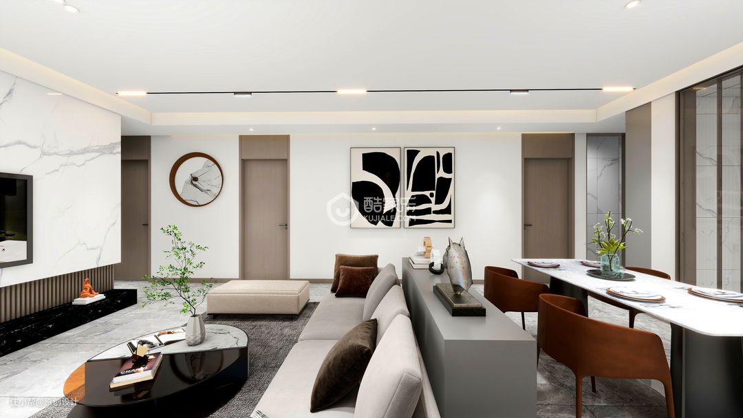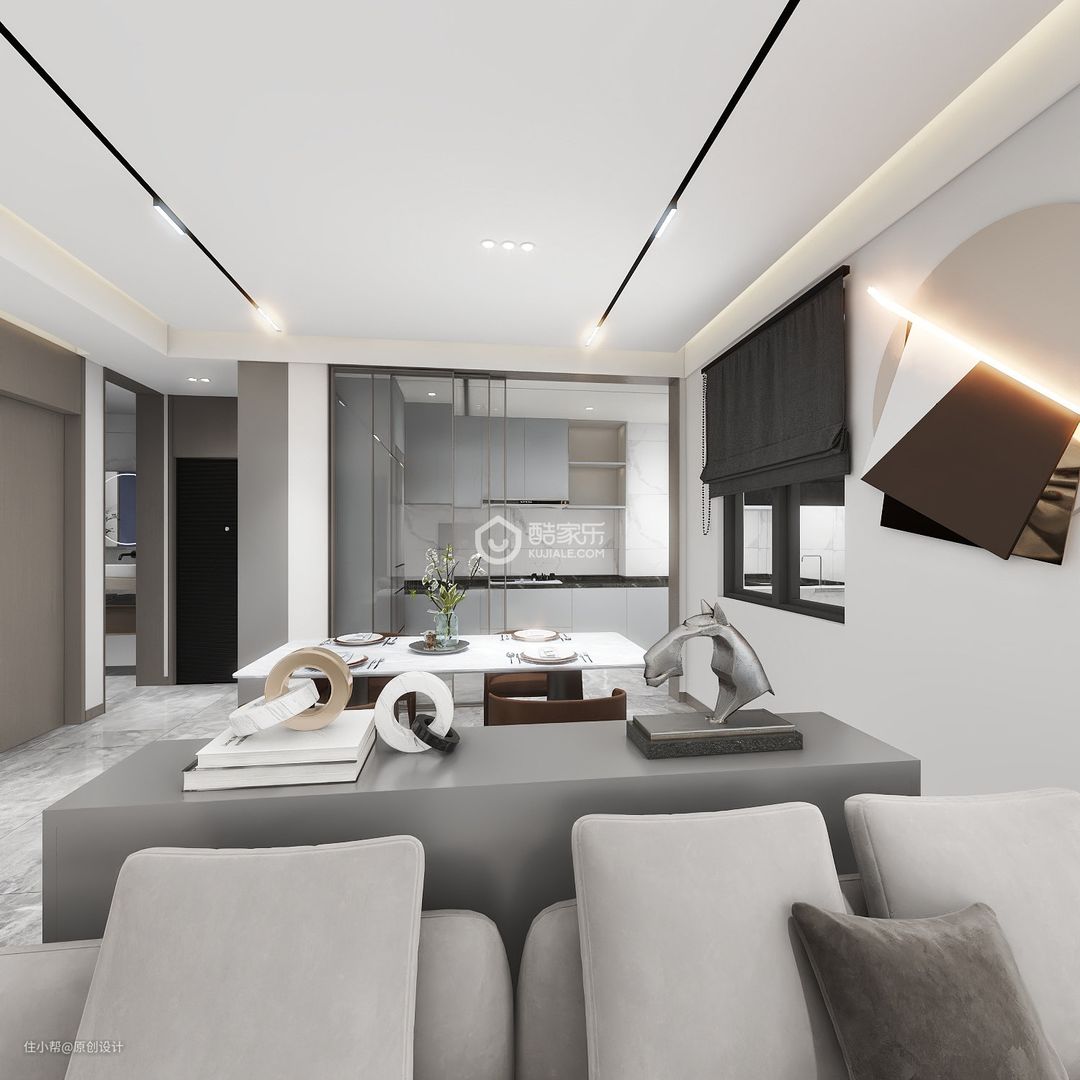 客餐厅整体黑白灰的色调,以极简的设计线条,搭配无主灯设计,大横厅的布置让空间更显开阔,超大落地窗的视野,让城市风景欣然入怀