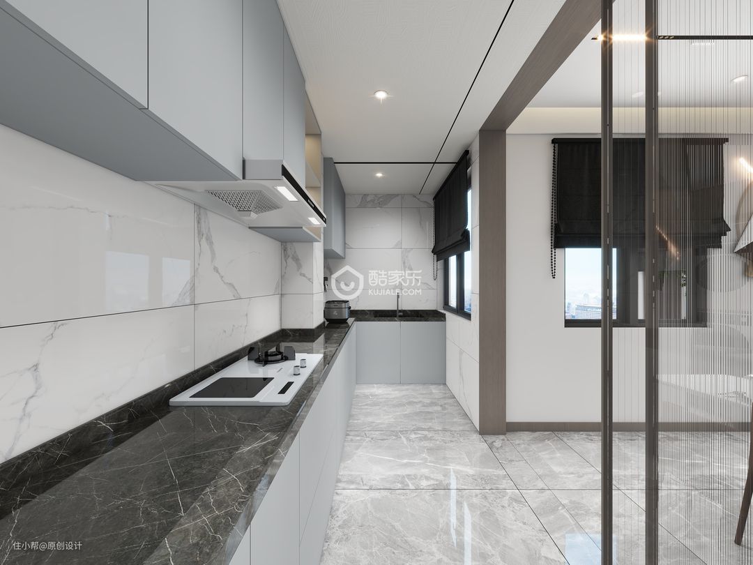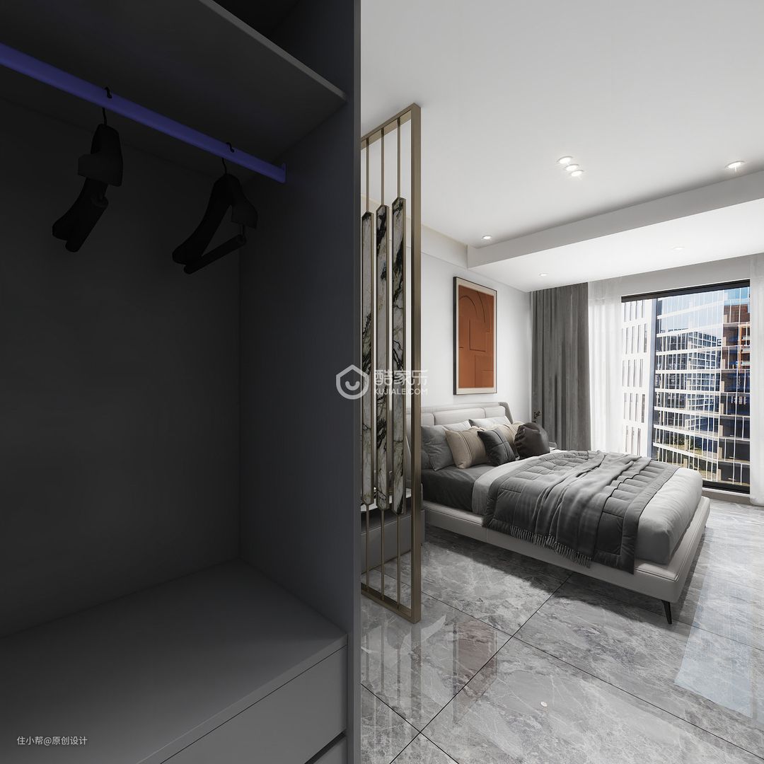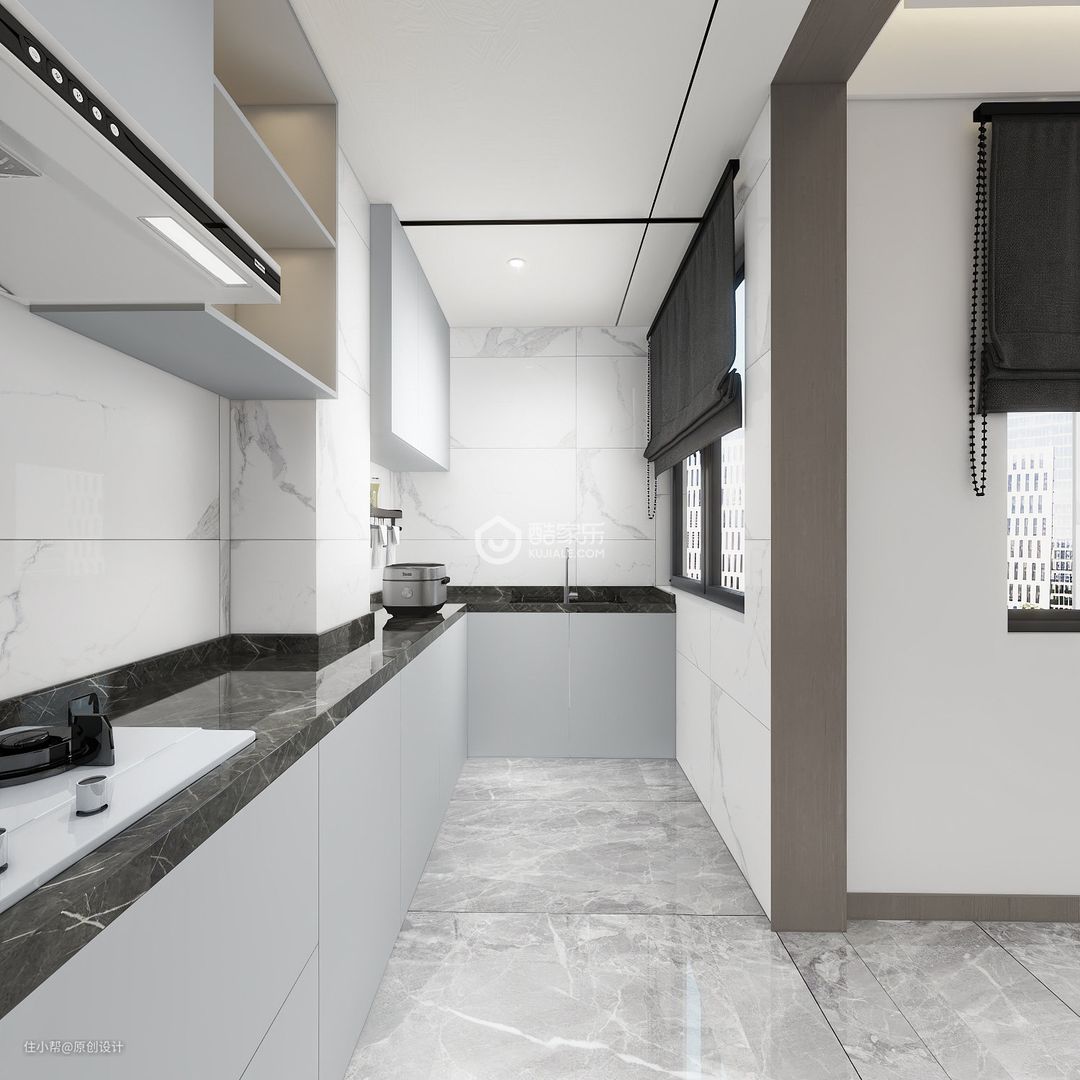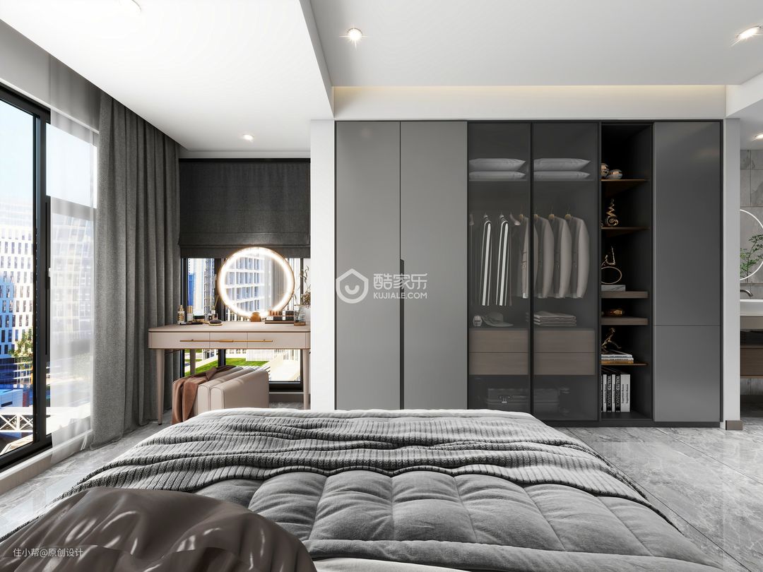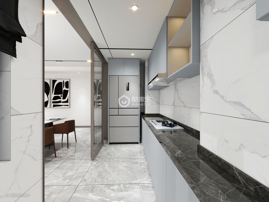 客餐厅整体黑白灰的色调,以极简的设计线条,搭配无主灯设计,大横厅的布置让空间更显开阔,超大落地窗的视野,让城市风景欣然入怀