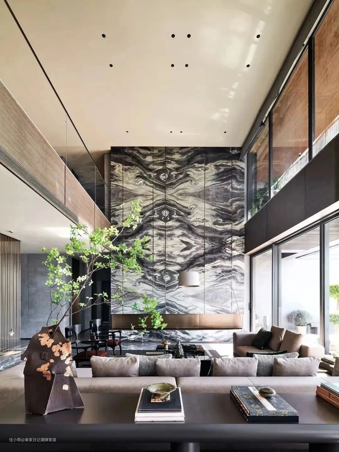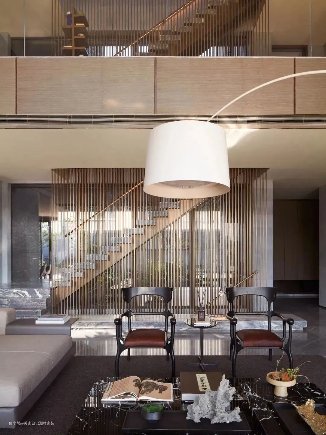 棕色系作为辅助,微空间增添文化深度,落地灯划出完美的曲线,为空间增加灵动与个性化。