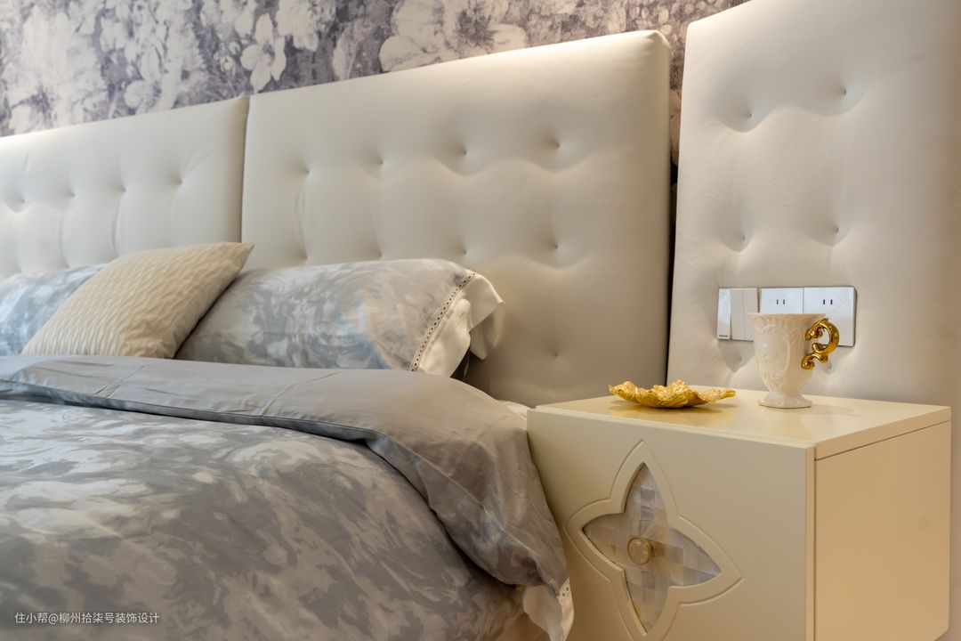 床头背景墙的高级韵味更能让人沦陷于法式优雅 衣帽间的白金配色让气质涌现