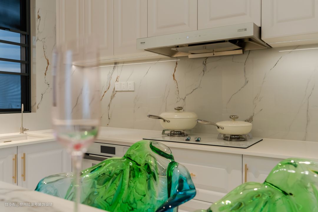 厨房做为开放式空间,U型的橱柜和餐边柜