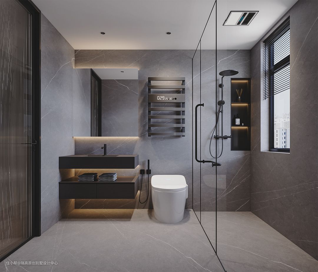 卫生间原有墙面的切角被改为常规直角,与整体空间更加统一。简洁而不失设计感,让人感受到现代风格的独特魅力。
