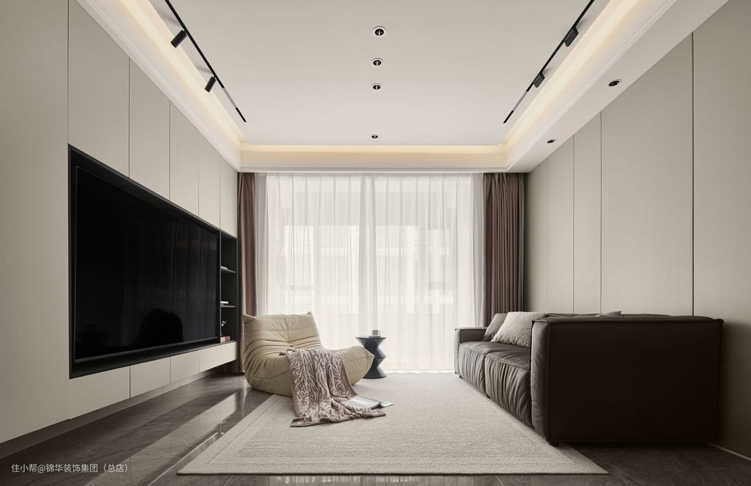 全屋采用轻硬装重软装的原则,简洁清爽的墙面设计奠定现代风的基础,家具选择上尽量简约不张扬,色调与中古深木色不冲突,让家具更好的融入整体。收纳上采用集中的方法,公区配备独立储物间,解决屋主的实际生活需求,风格上和谐统一,功能上也实现便捷舒适最大化。