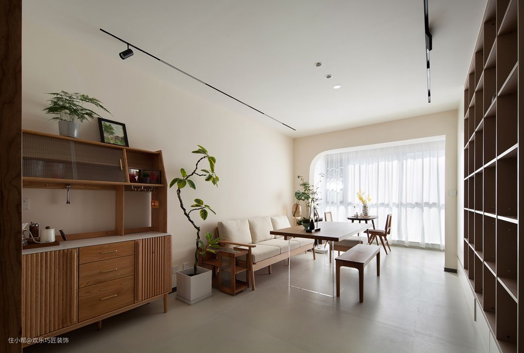 光影柔和的空间、古韵扶疏的家具,温润的木质色调与柔软的白色基调融洽无间,勾勒出一幅写意的美感画卷,如诗如画,让心灵在宁静的空间中徜徉。