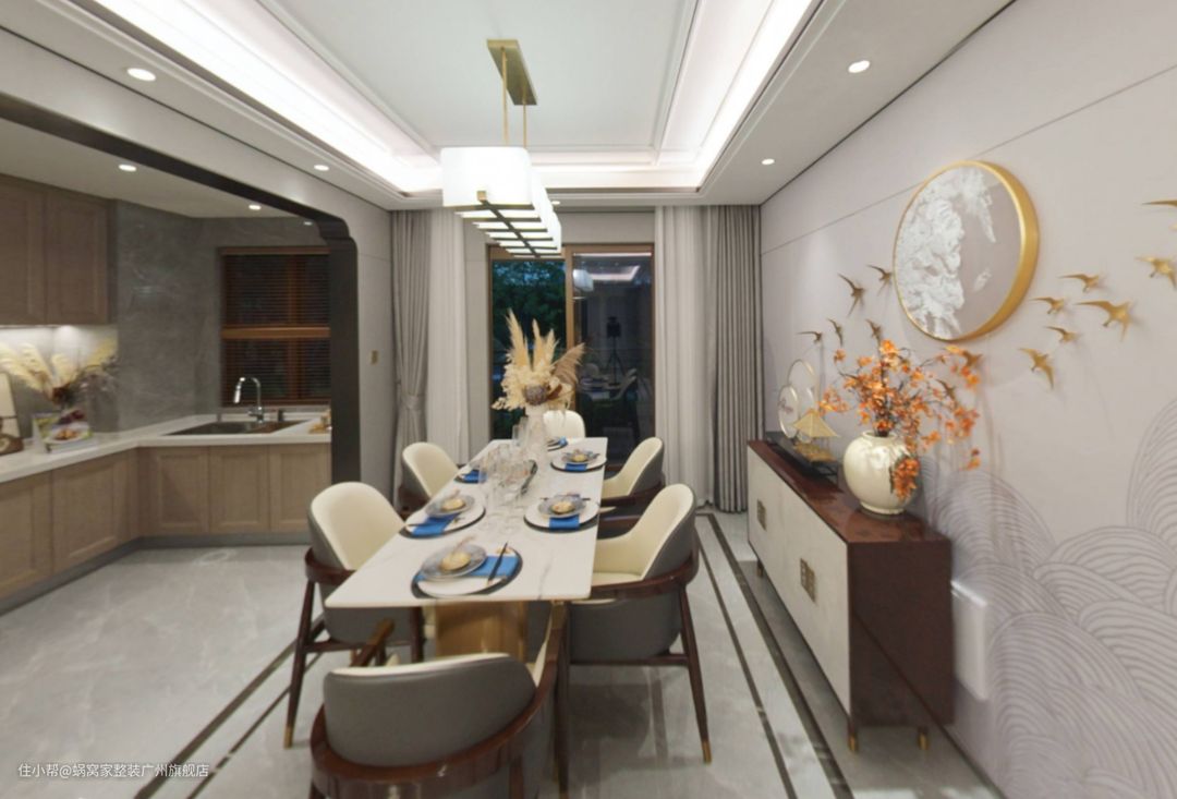 1、客厅大理石电视背景墙质感、色彩和设计都散发出一种不凡的气质。提升了客厅的整体质感。 2、在餐厅的中央,一盏金属边吊灯静静地悬挂在餐桌之上。吊灯的金属边缘闪耀着微弱的光芒,与餐桌上的餐具相互辉映,彰显出一种低调的奢华。 3、厨房设计巧妙,上下收纳柜以浅色为主,清新而自然。不仅增添了空间的温馨感,还让厨房显得宽敞明亮。