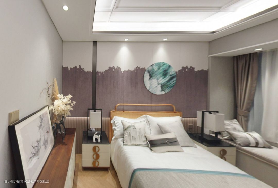次卧的设计巧妙地融入了新中式元素,为空间增添了一抹独特的韵味。墙上的壁画,以简洁的线条勾勒出山水之景,清雅幽远,宛如一幅淡墨山水画,引人入胜。书法挂字则笔力劲挺,气韵生动,笔划间流露出中国传统文化的深厚底蕴。这些新中式元素的运用,不仅为次卧增添了一丝清雅的气息,更在不经意间流露出中国传统文化的独特魅力。置身其中,仿佛能感受到那份古朴与现代交融的美感,让人心旷神怡,忘却尘世的喧嚣。