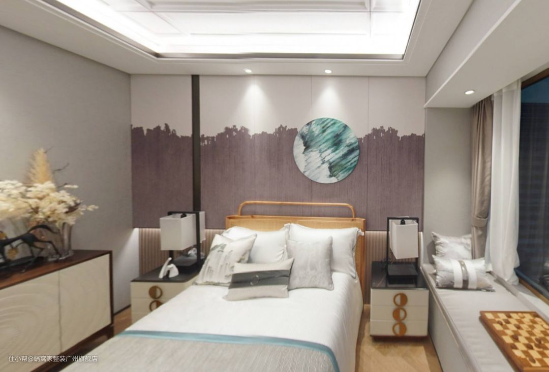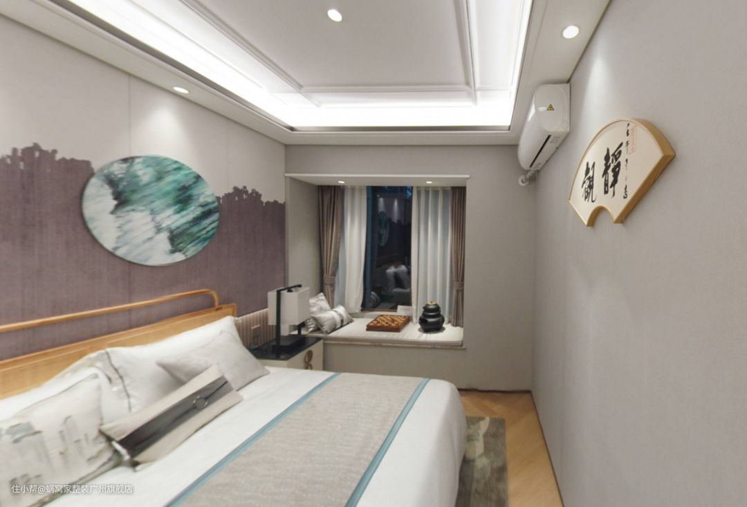 在本期案例中,你可以感受到新中式设计的独特魅力,品味高雅、舒适的生活方式。设计巧妙地融入了新中式元素,为空间增添了一抹独特的韵味。在卧室的设计上,设计师选择以简洁的线条勾勒出山水之景,清雅幽远,宛如一幅淡墨山水画,引人入胜。书法挂字则笔力劲挺,气韵生动,笔划间流露出中国传统文化的深厚底蕴。这些新中式元素的运用,不仅为全屋增添了一丝清雅的气息,更在不经意间流露出中国传统文化的独特魅力。置身其中,仿佛能感受到那份古朴与现代交融的美感,让人心旷神怡,忘却尘世的喧嚣。