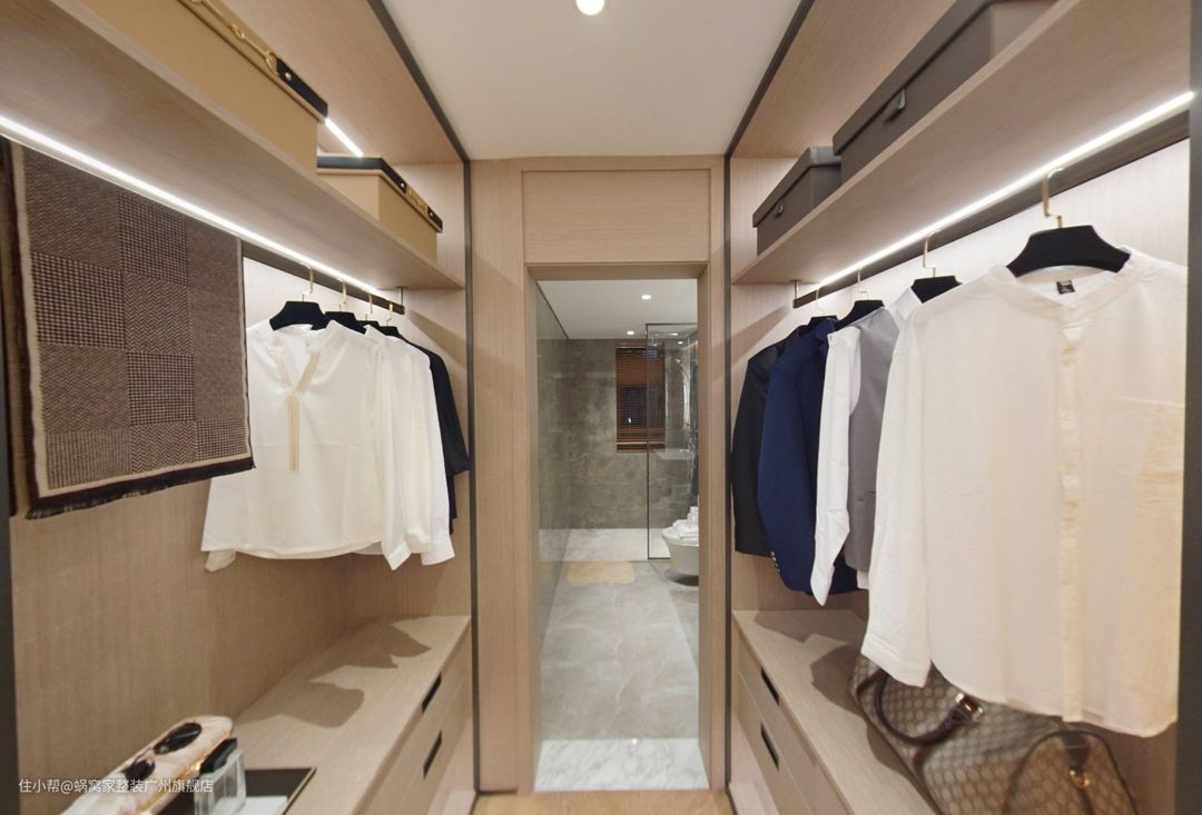 从主卧的衣柜望去,恰巧可以看到两个玻璃半隔断。这些隔断晶莹剔透,仿佛将卧室的空间一分为二,既保持了空间的通透感,又增加了私密性。灯光透过玻璃隔断,洒在房间里,光影交错,如梦如幻。这样的设计既现代又舒适,让整个卧室充满了雅致的生活气息。