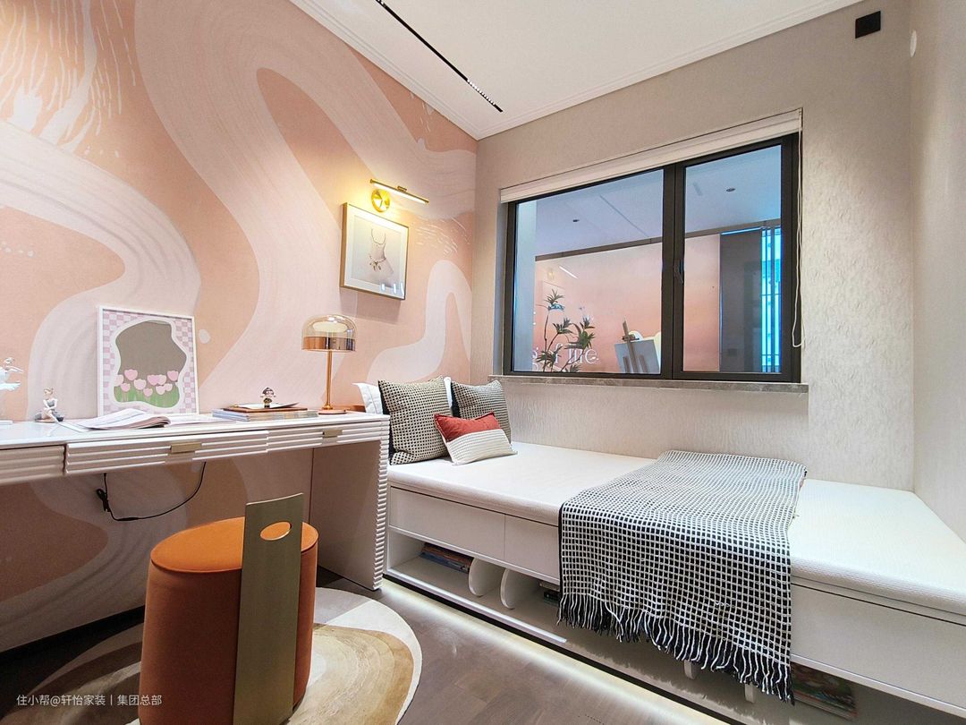 俗话说“女儿是父母的贴心小棉袄”,预留的女儿房当然需要做一番功夫啦~整个卧室的空间主要使用的是淡雅温柔的浅粉色,搭配上清晰自然的白色,看似肩带却让人怦然心动。考虑到小卧室也需要大收纳,白色的床下面打造的是抽屉+收纳格,也是将空间最大化利用! 独家定制的转角书桌设计,不仅有可以储物的功能,还有能够提升空间的统一度,从而达到装饰美化空间的效果。
